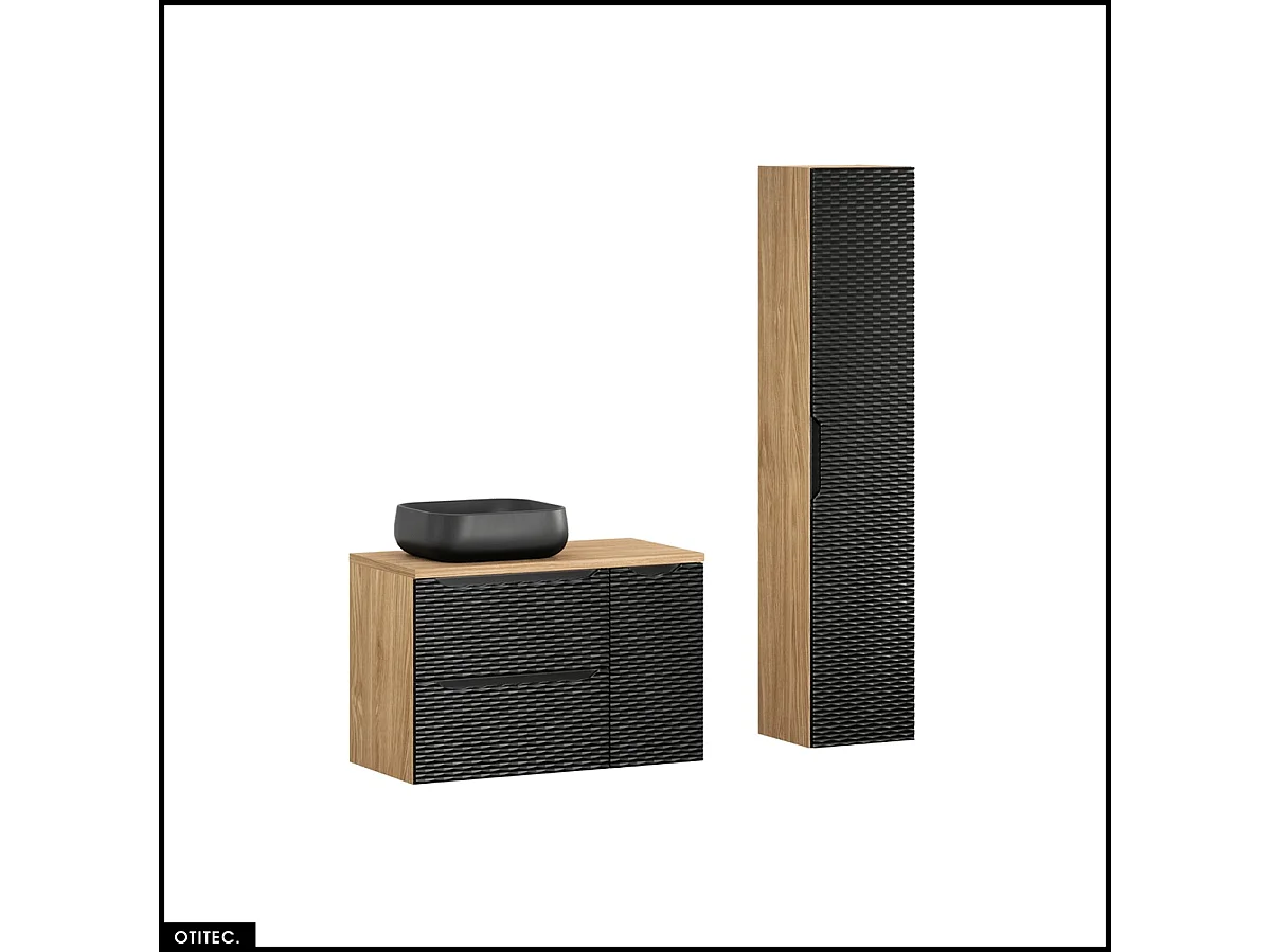 Ensemble de meubles de salle de bain - 90 cm - avec plan - avec vasque à poser - avec colonne - 2 tiroirs - SEA BLACK