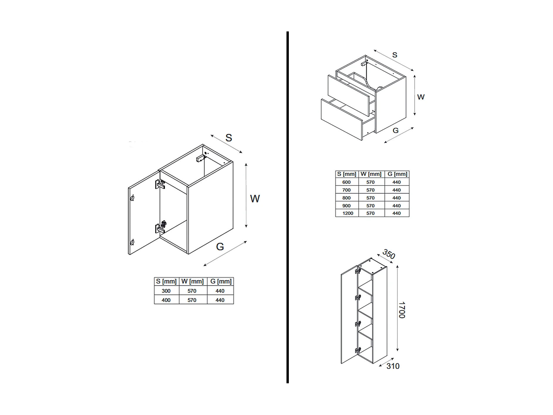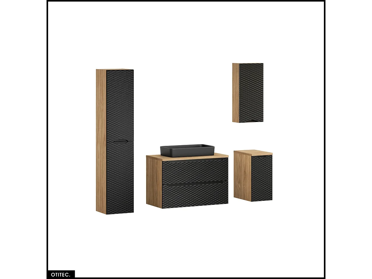 Ensemble de meubles de salle de bain - 90 cm - avec plan - avec vasque à poser - avec colonne et Meubles - 2 tiroirs - SEA BLACK