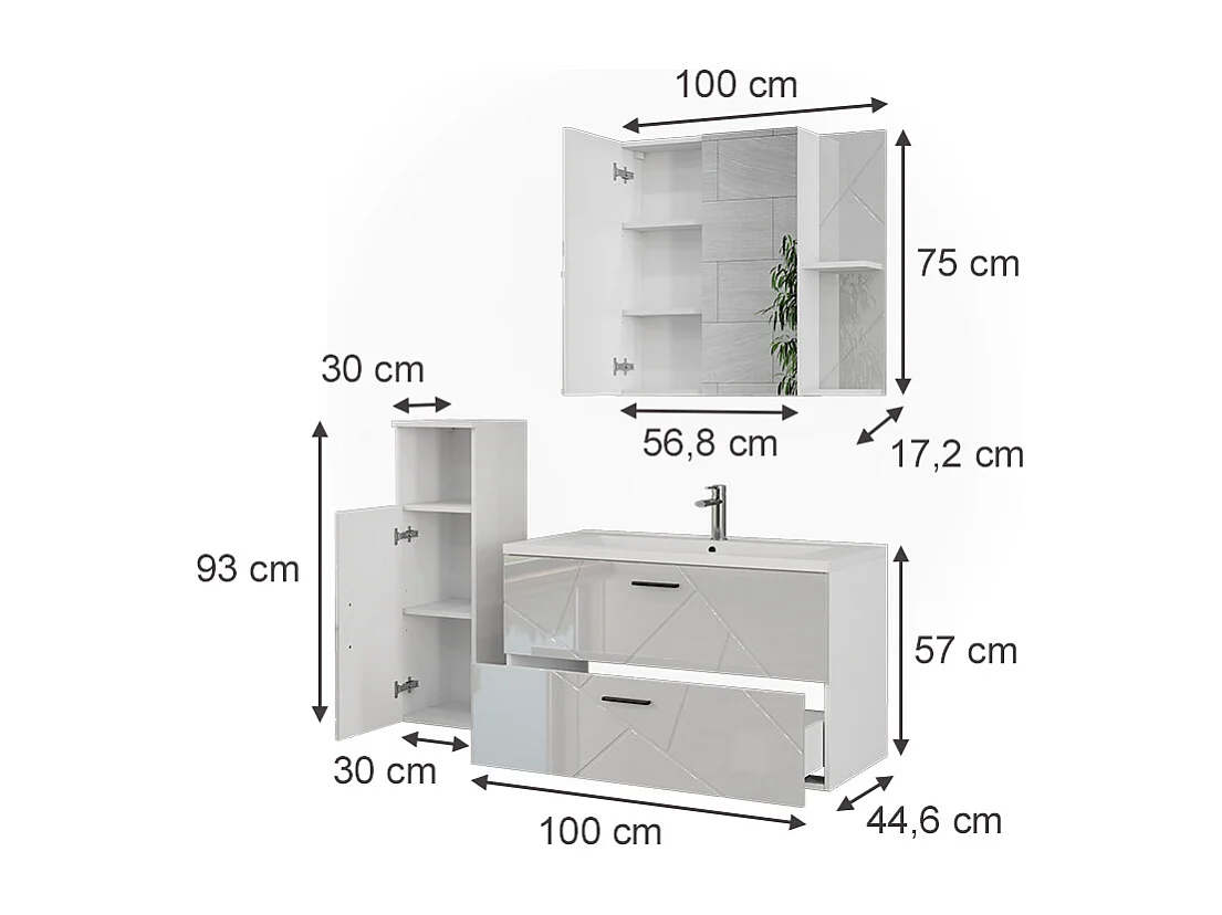 Ensemble de meubles de salle de bains blanc/blanc brillant 100x46x57 irma