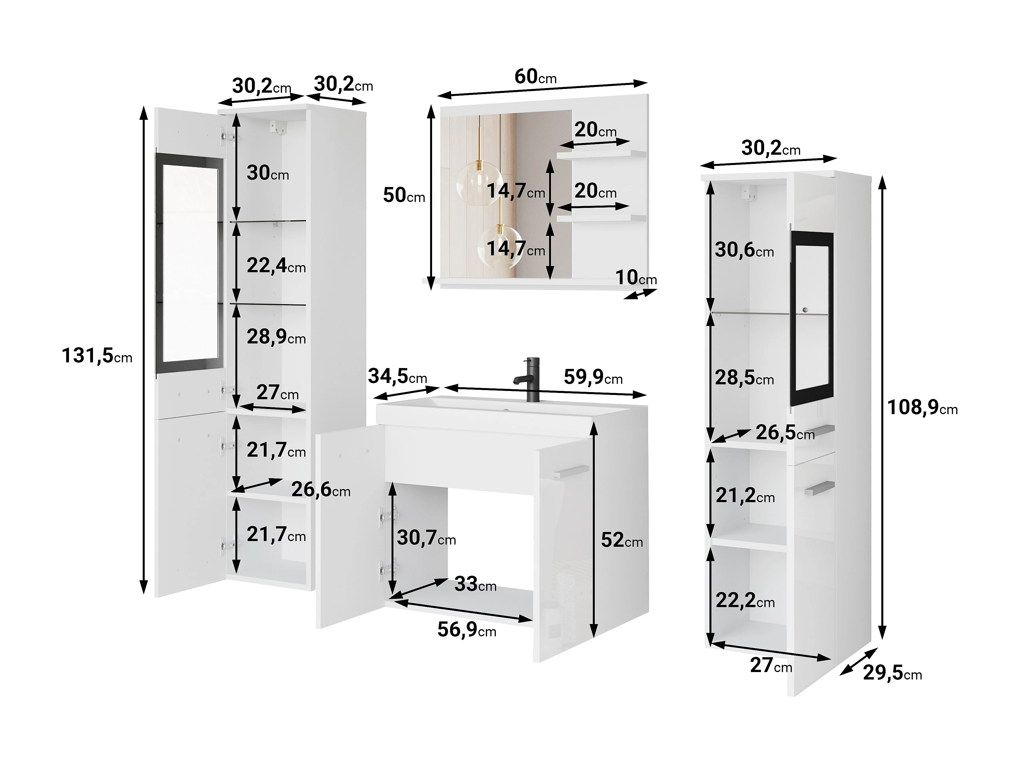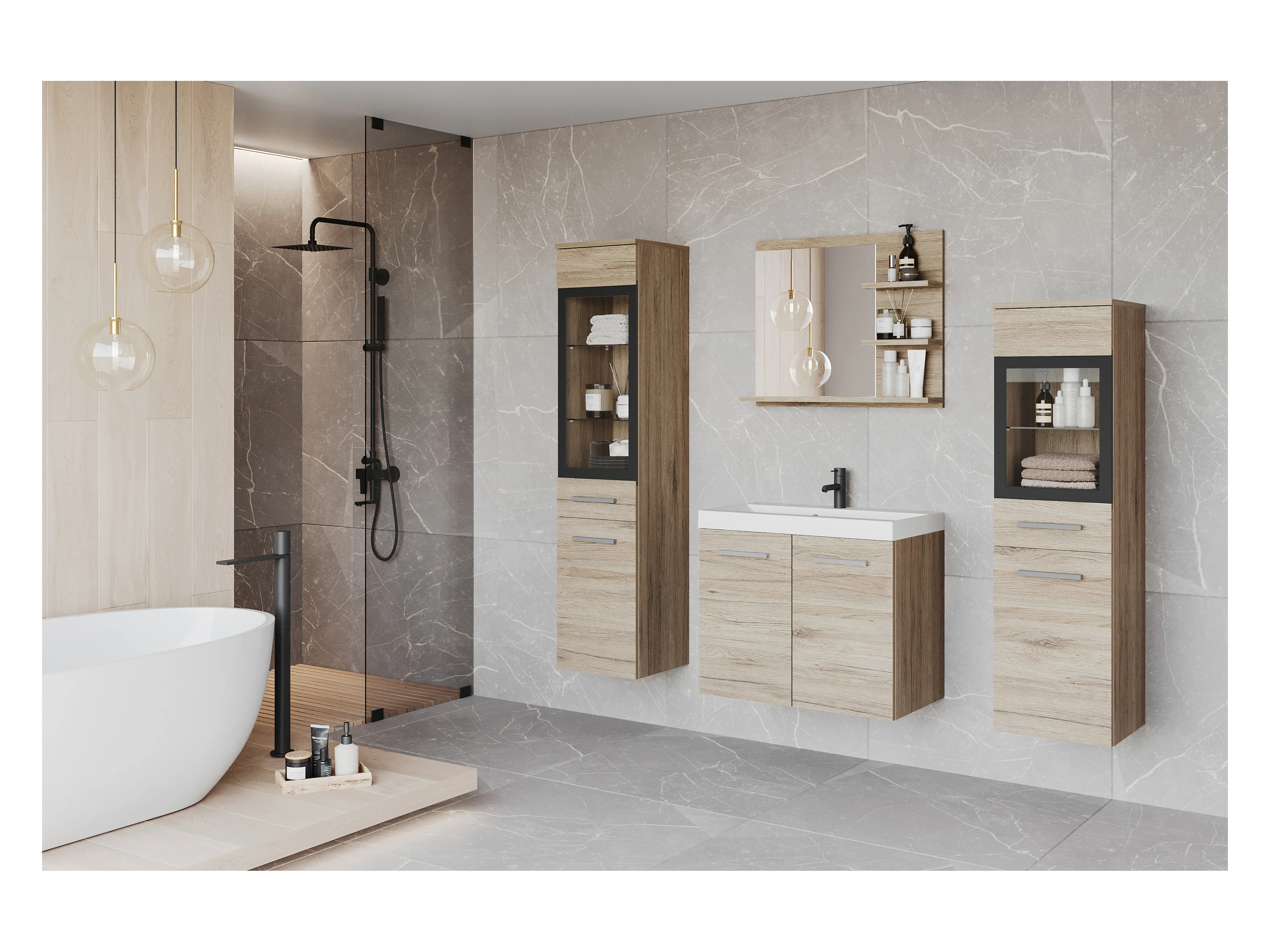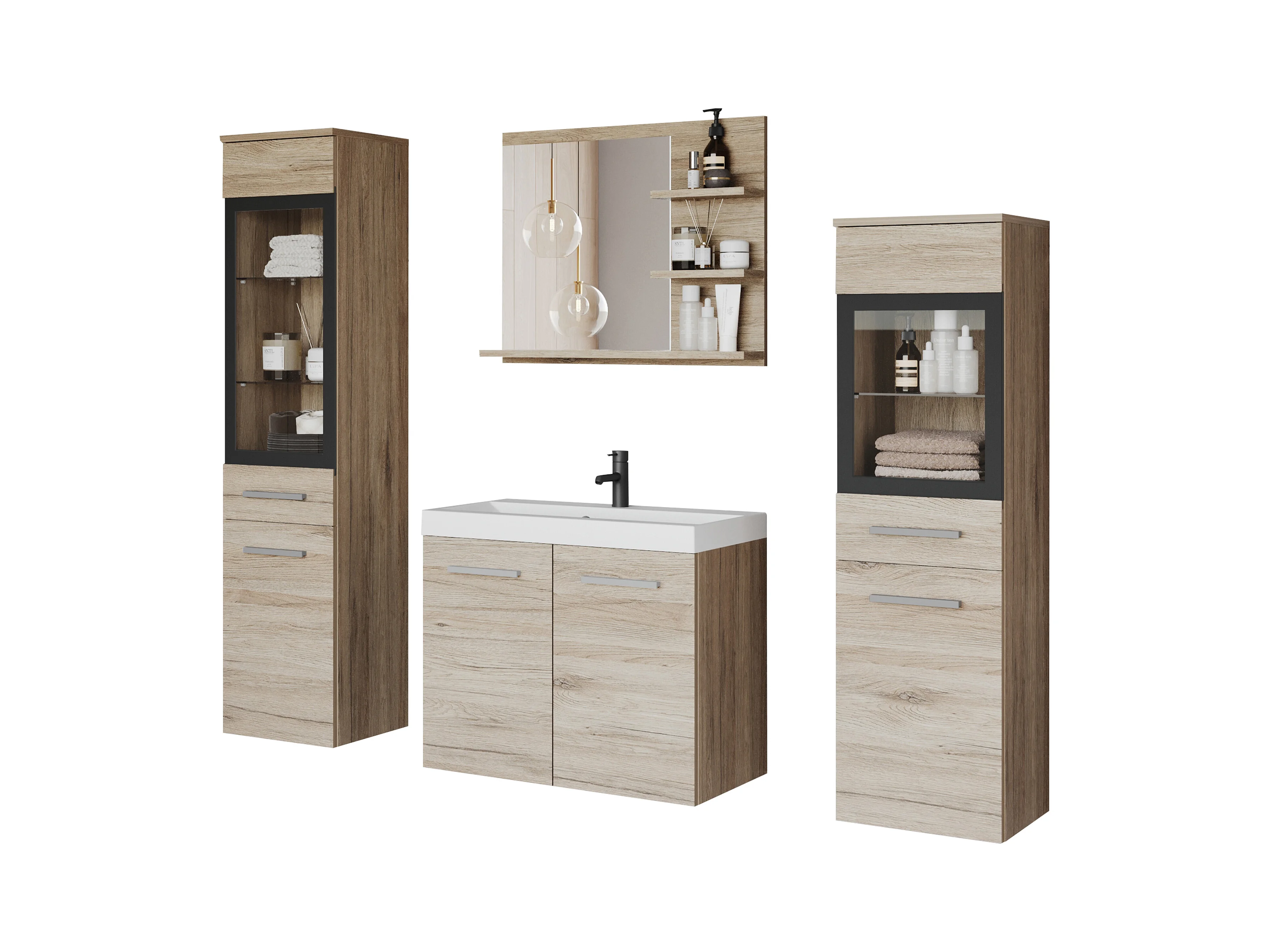 Ensemble de salle de bain, meubles suspendus avec lavabo, 2 colonnes et miroir avec étagères, san remo mat
