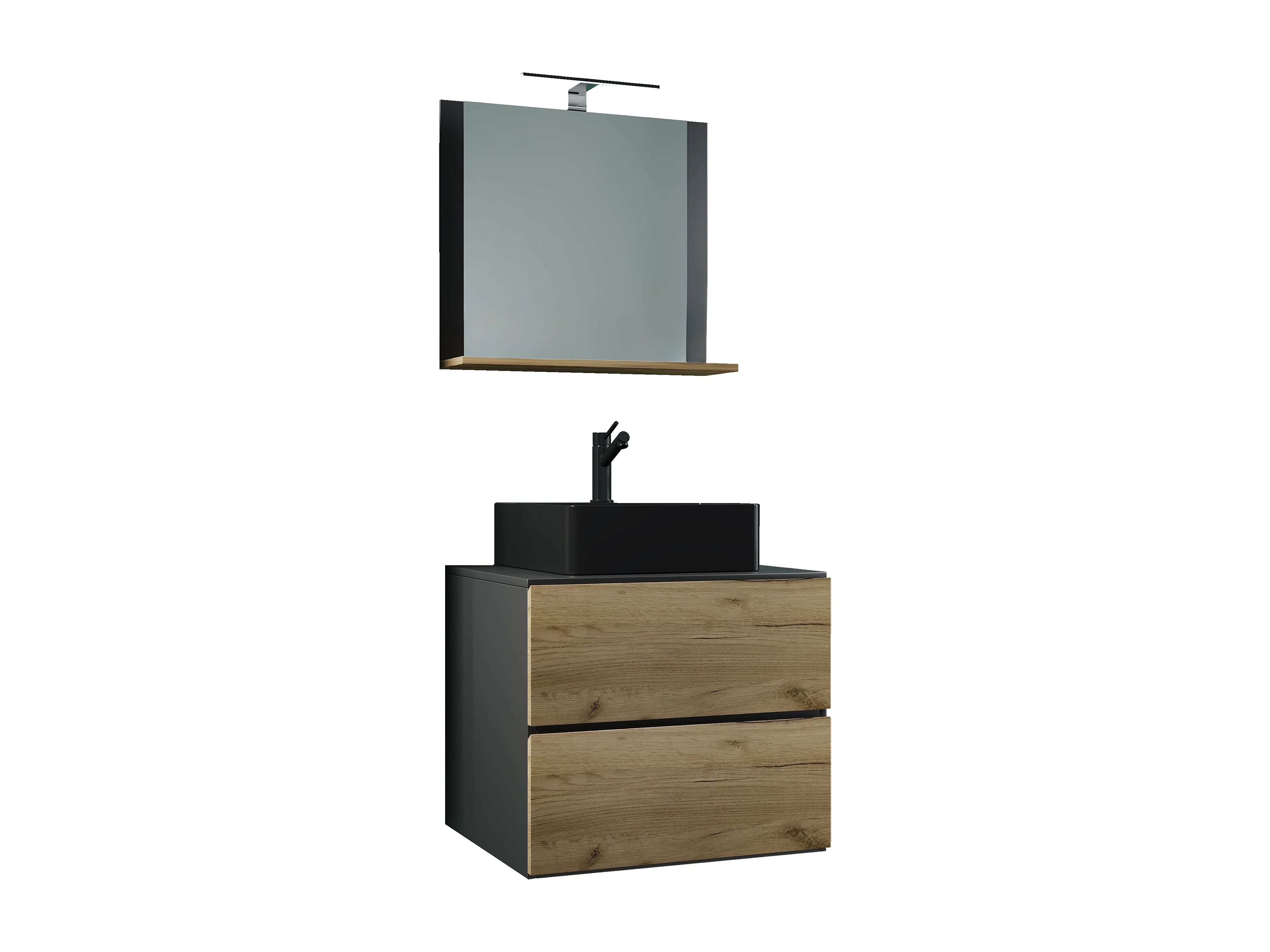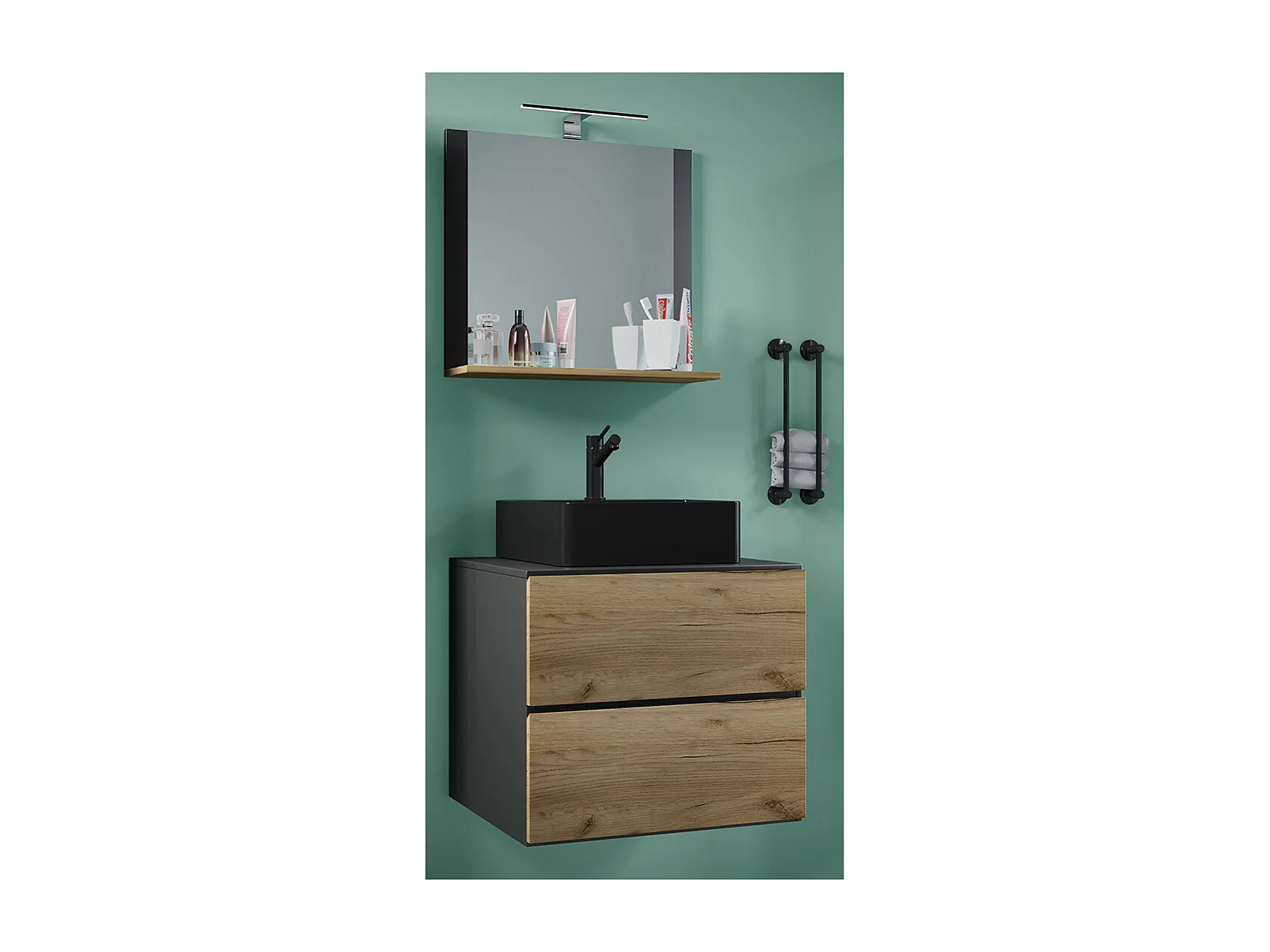 Bathroom furniture washbasin Lendas Anthracite / honey oak H. 124 x W. 60 x D. 52 cm