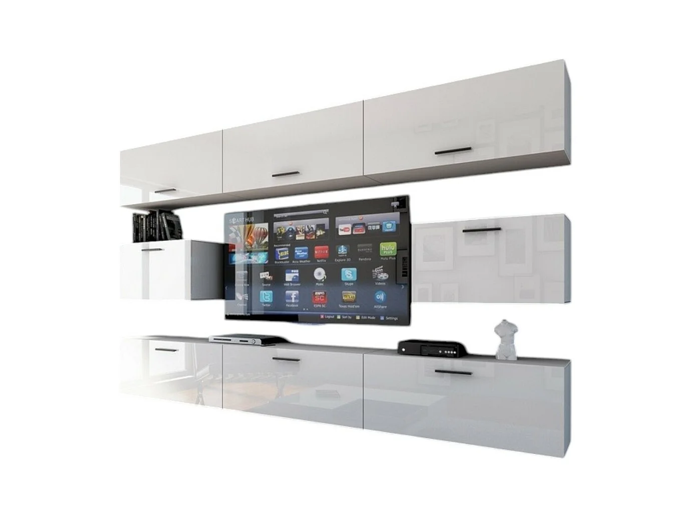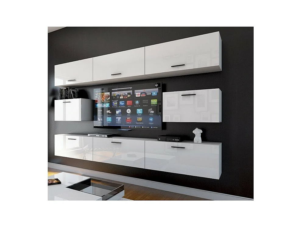 Ensemble de meubles de salon blanc suspendus collection CEPTO VII 249cm, 8 portes, modulables.