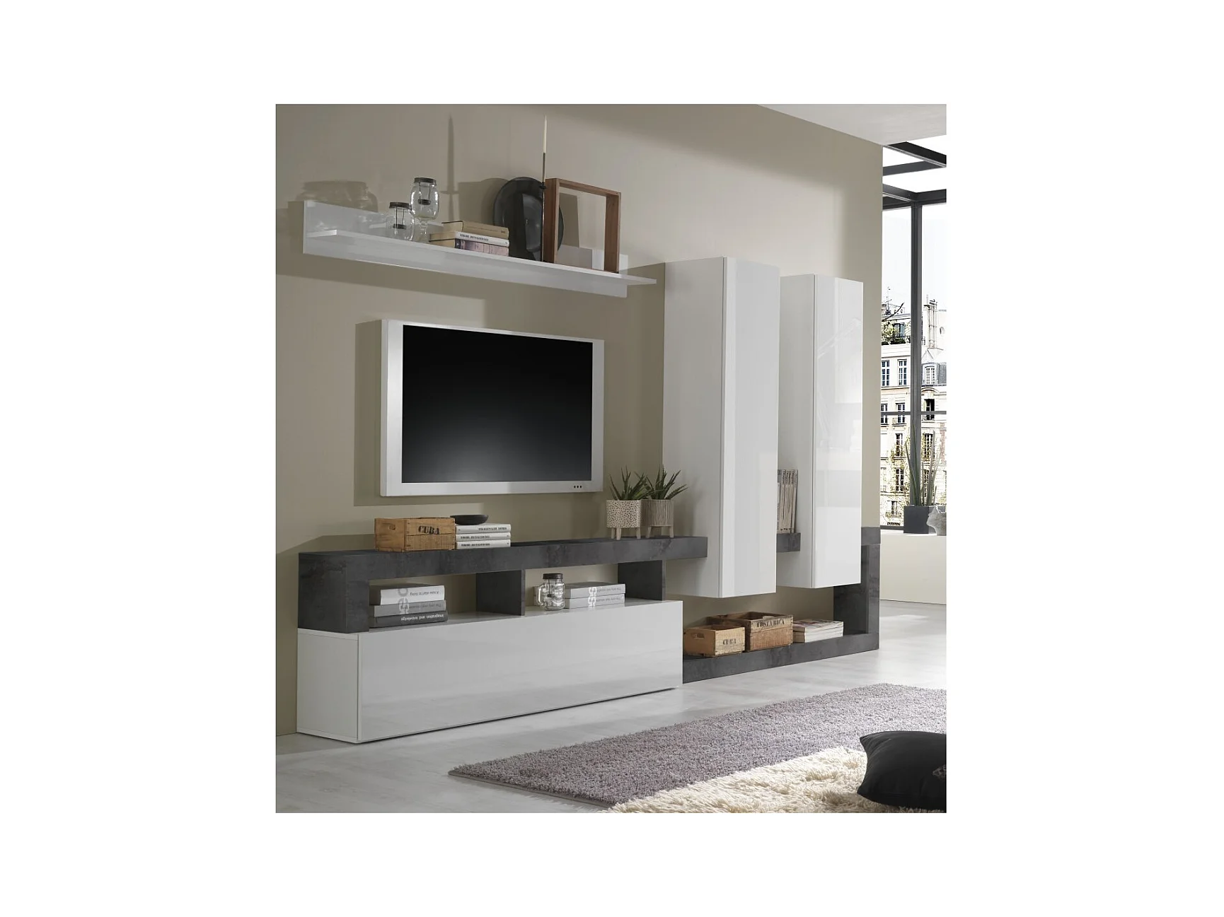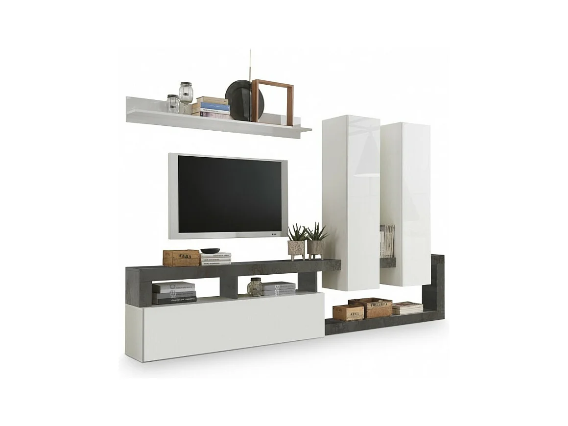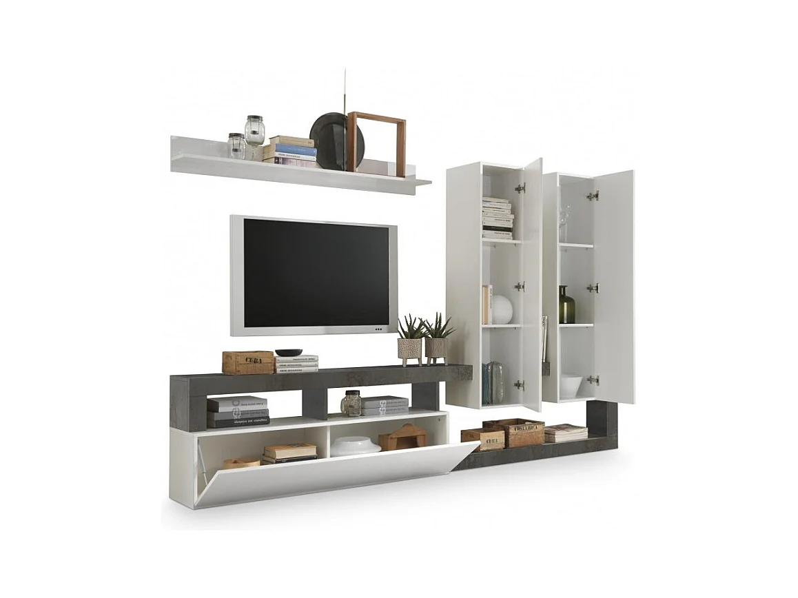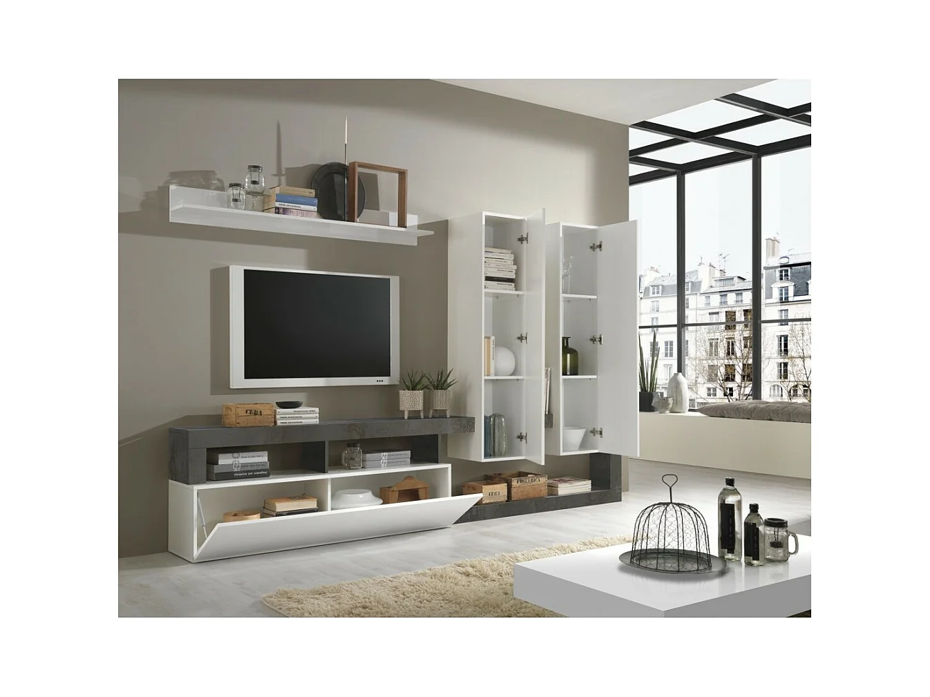 Ensemble meubles salon avec rangements, collection BURA, blanc laqué/gris anthracite