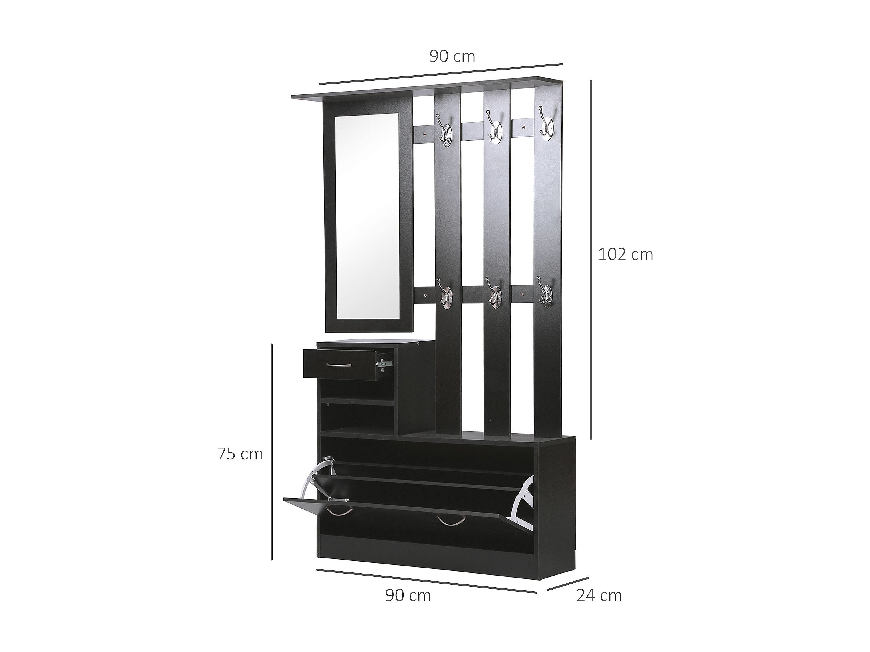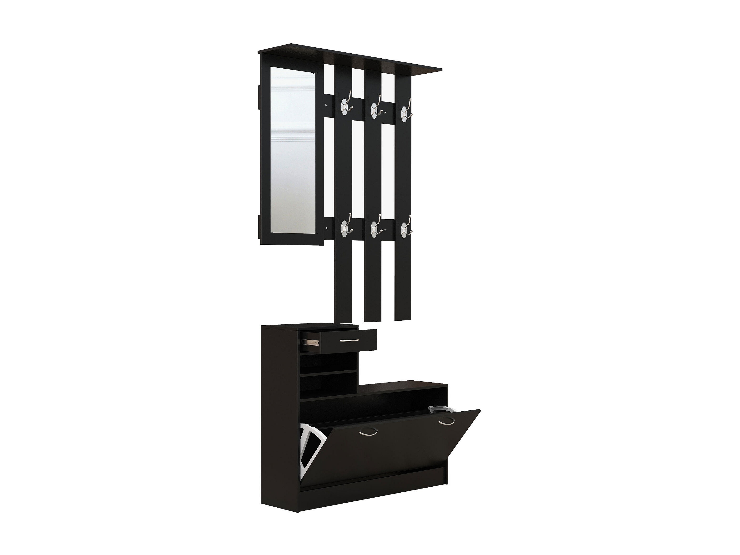 Ensemble de meubles d'entrée design contemporain : meuble chaussures, miroir et panneau porte-manteau panneaux de particules noir
