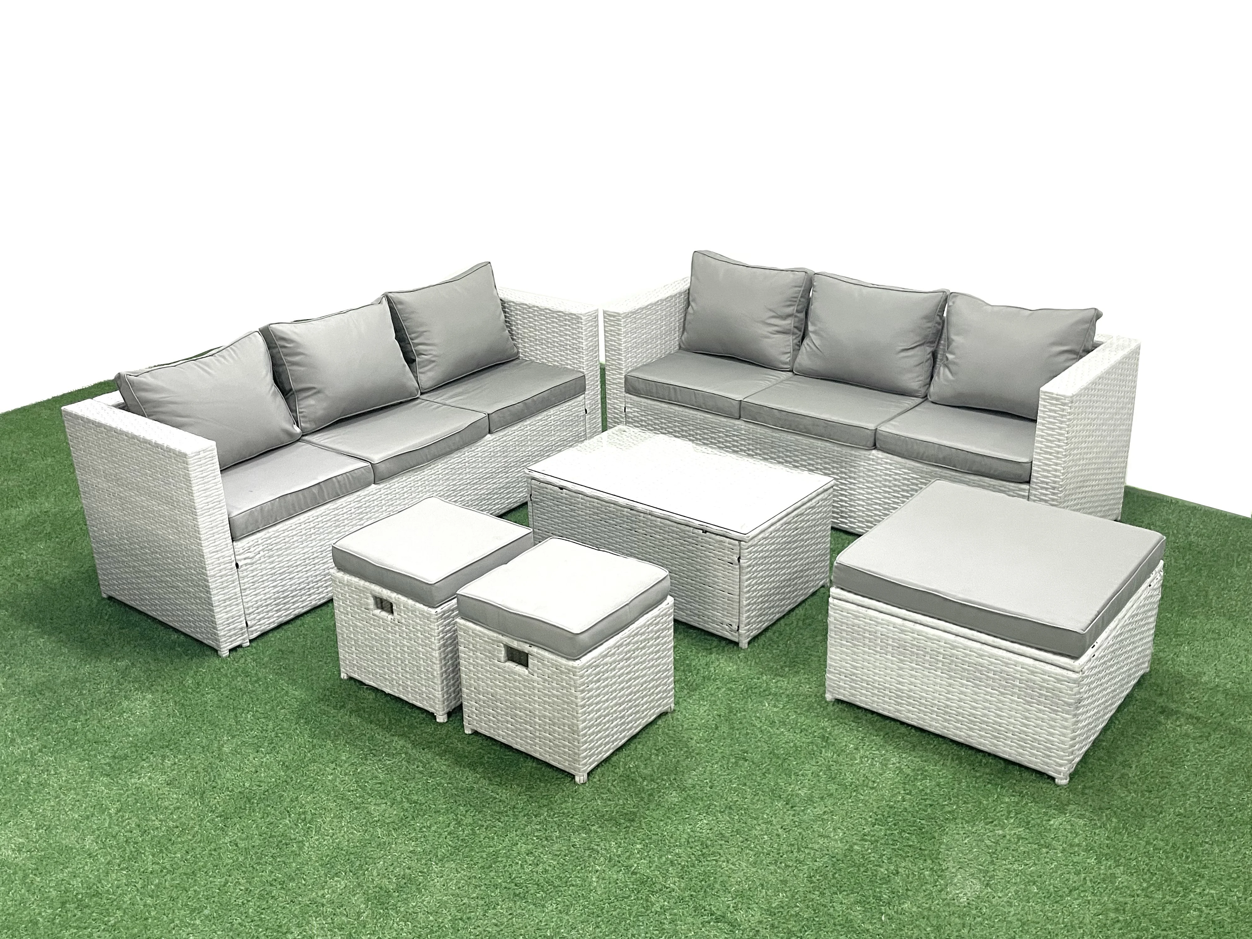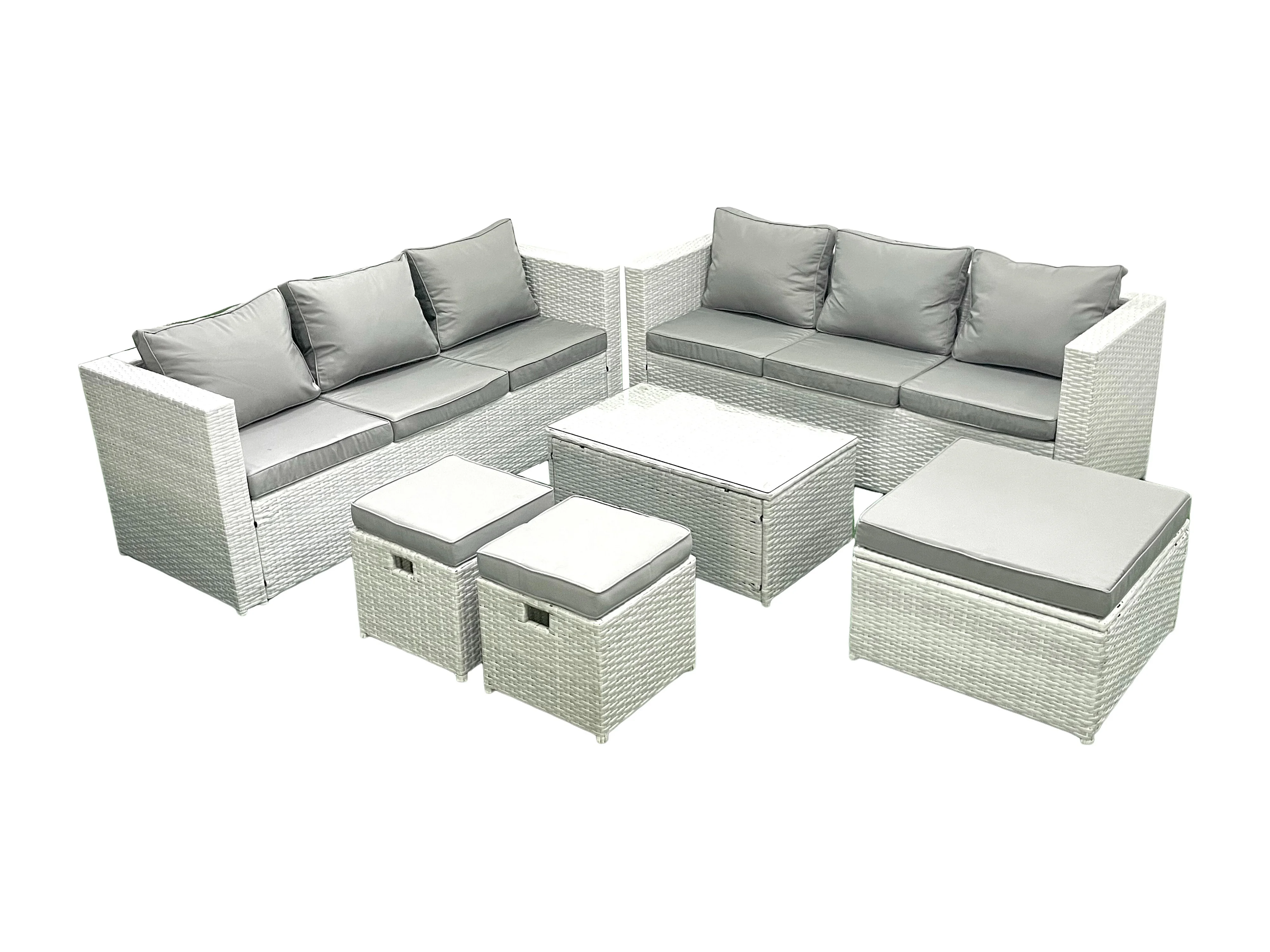 Ensemble de meubles d'extérieur en rotin 9 places avec 3 Tabourets Gris clair mixte