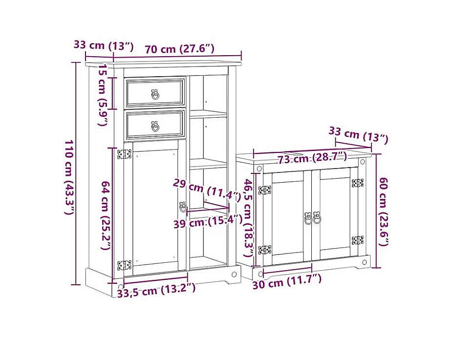 Ensemble de meubles salle de bain 2 pcs Corona bois pin massif