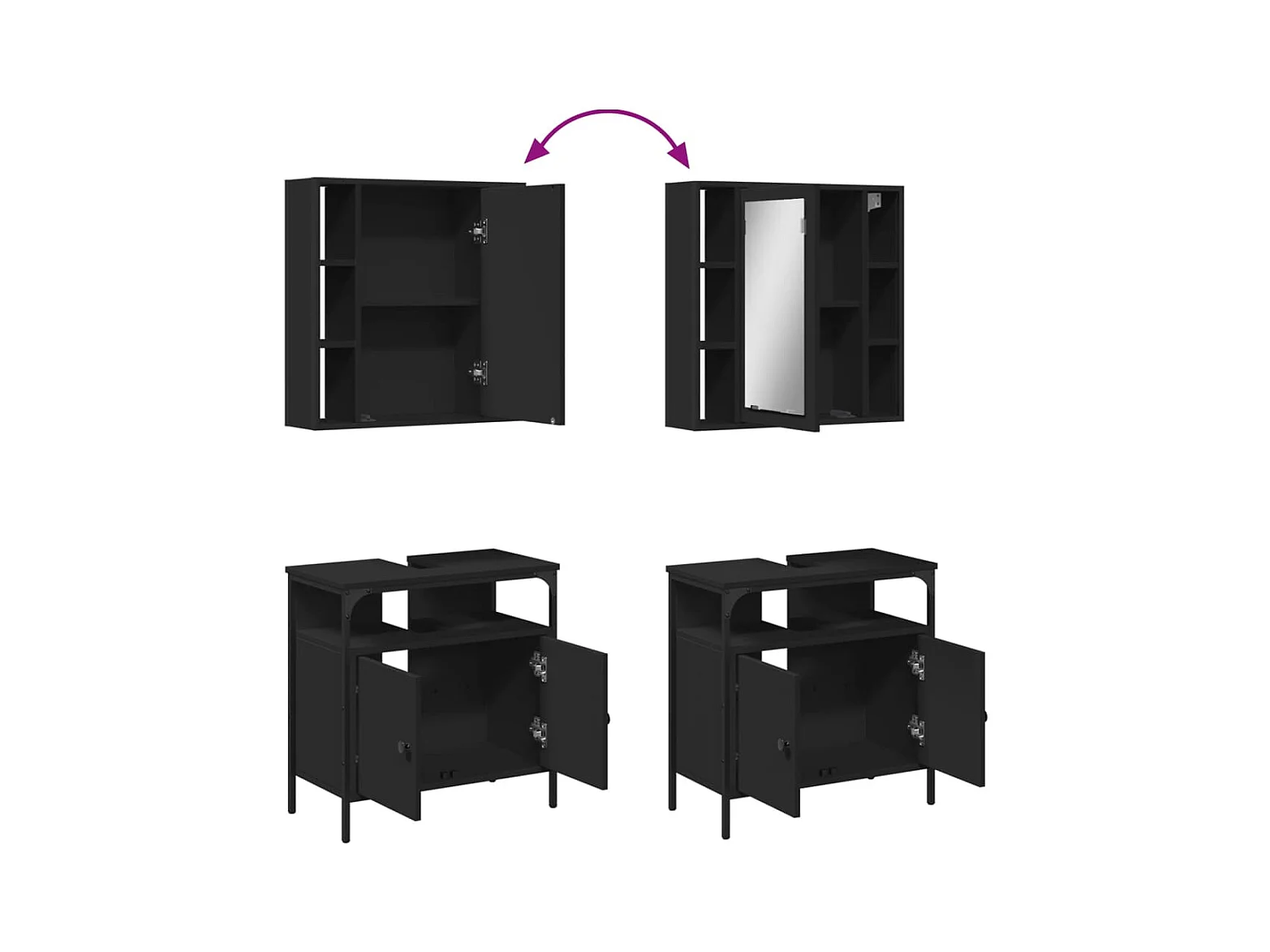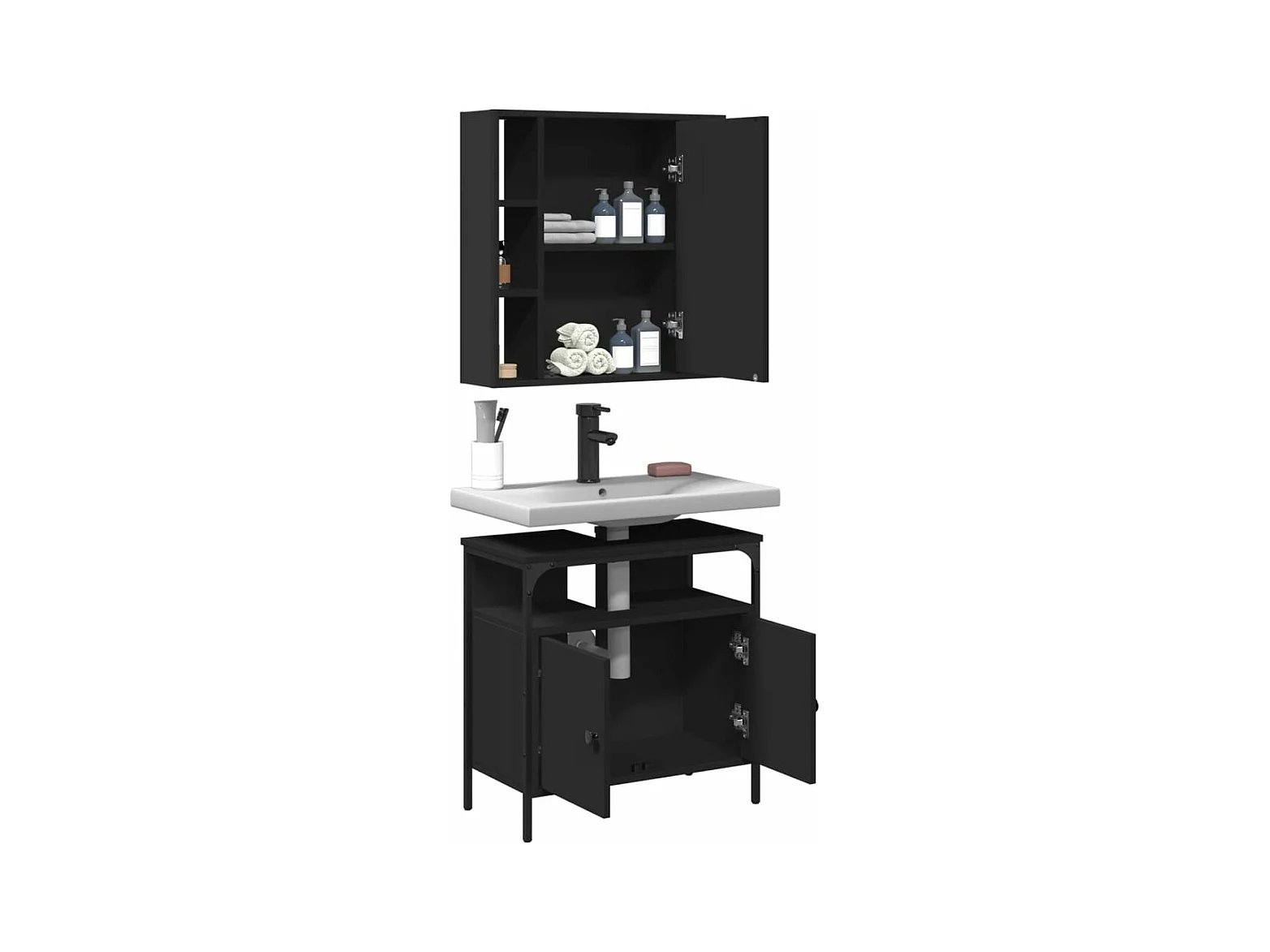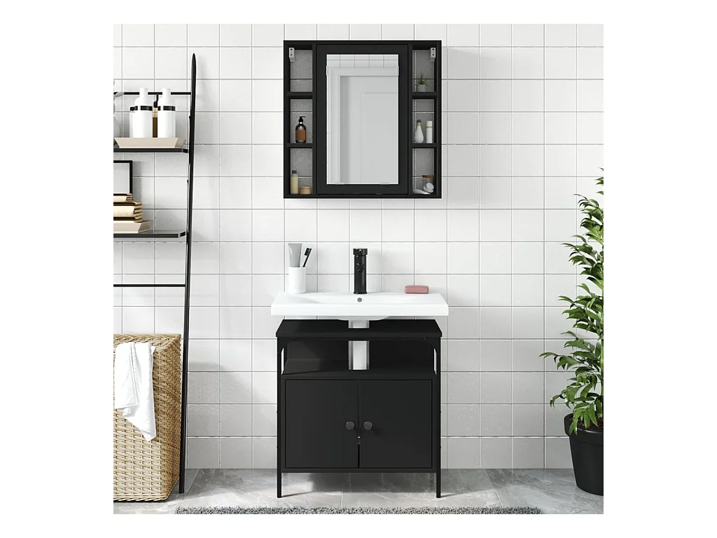 Ensemble de meubles salle de bain 2 pcs noir bois d'ingénierie