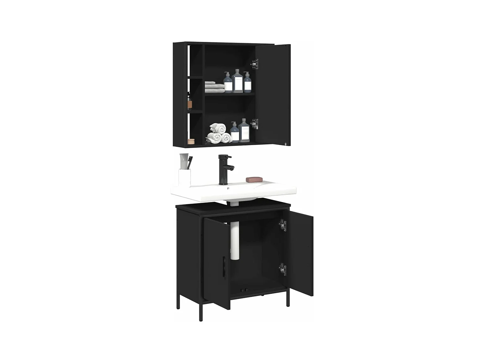Ensemble de meubles salle de bain 2 pcs noir bois d'ingénierie