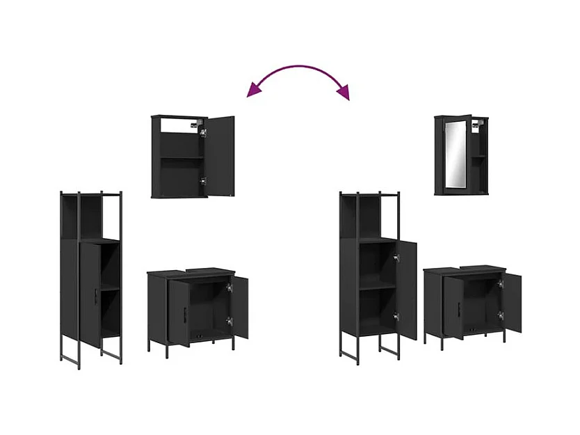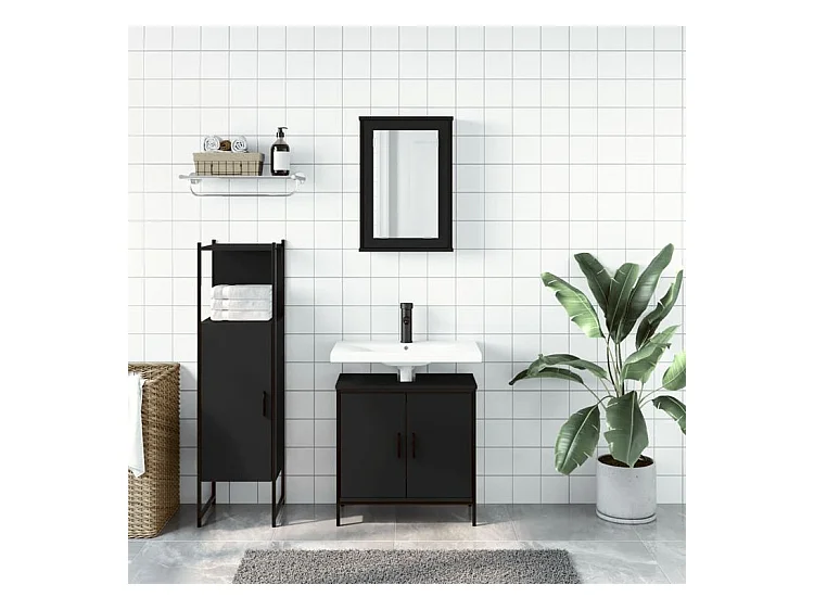Ensemble de meubles salle de bain 3 pcs noir bois d'ingénierie