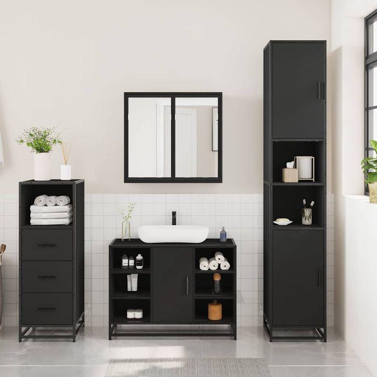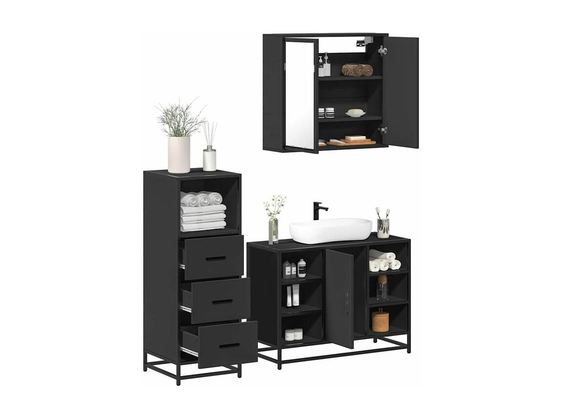 Ensemble de meubles salle de bain 3 pcs noir bois d'ingénierie