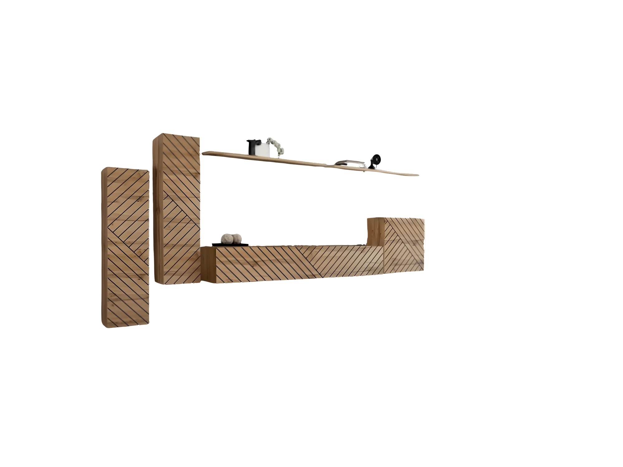 Ensemble de meubles suspendus pour votre salon collection SWITCH I. Coloris chêne. Finition façade fraisée.