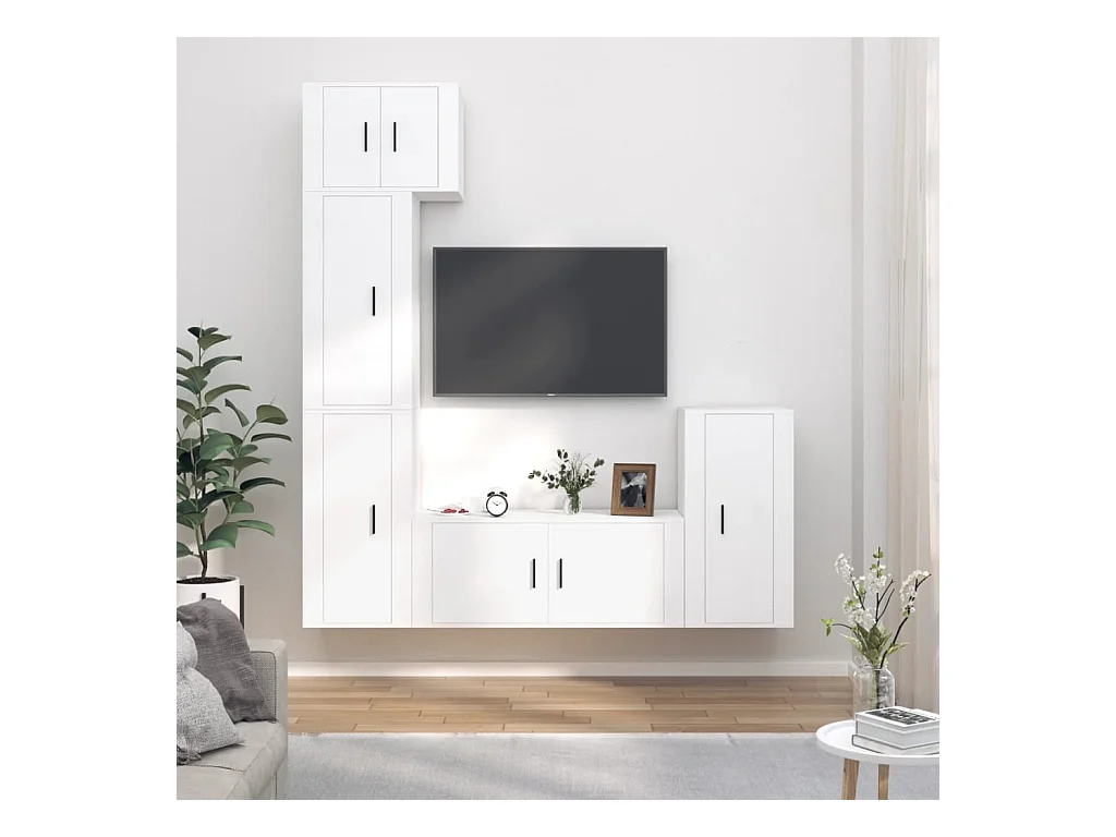 Ensemble de meubles TV 5 pcs Blanc Bois d'ingénierie