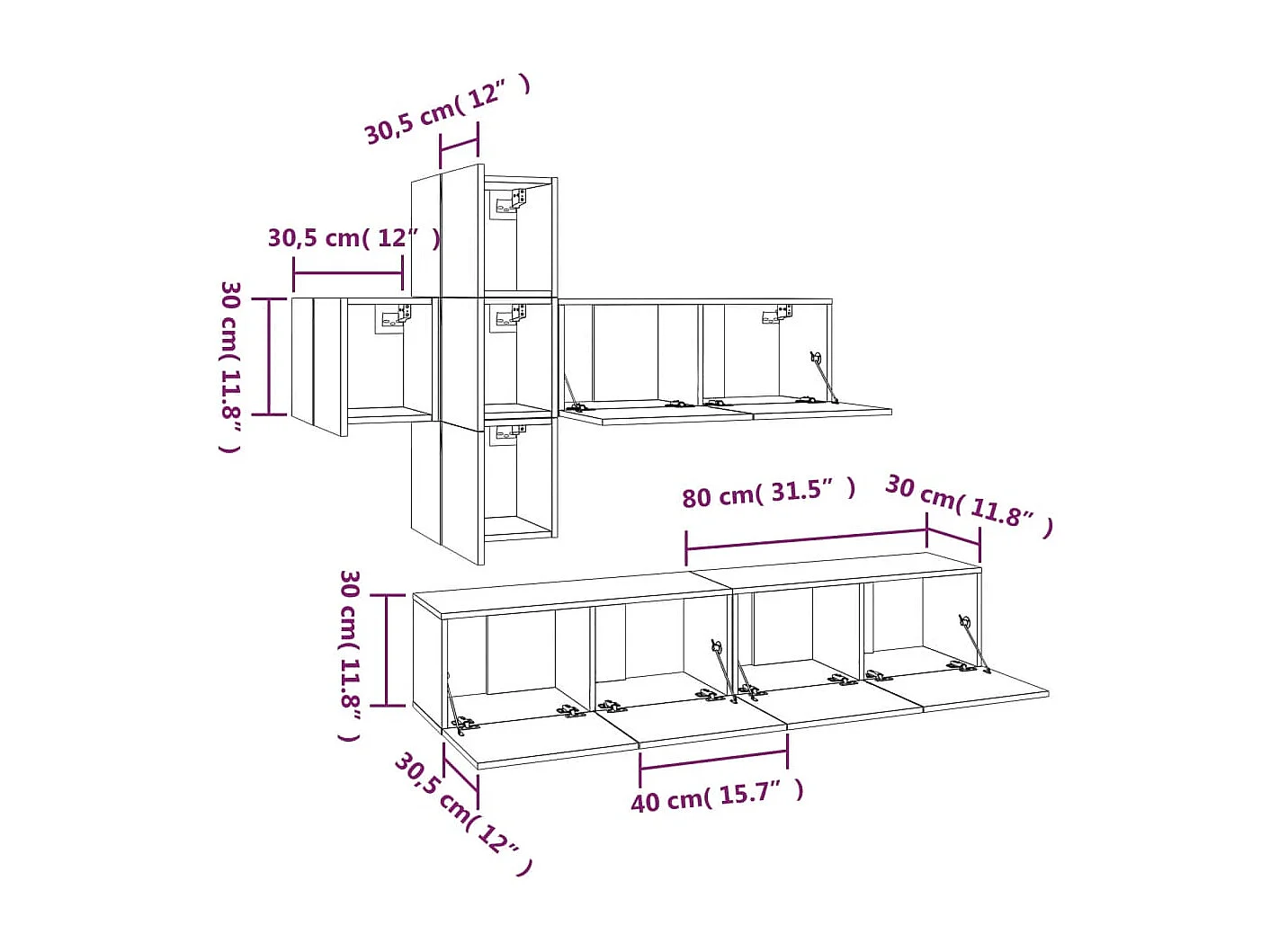 Ensemble de meubles TV 7 pièces Gris béton Bois d'ingénierie