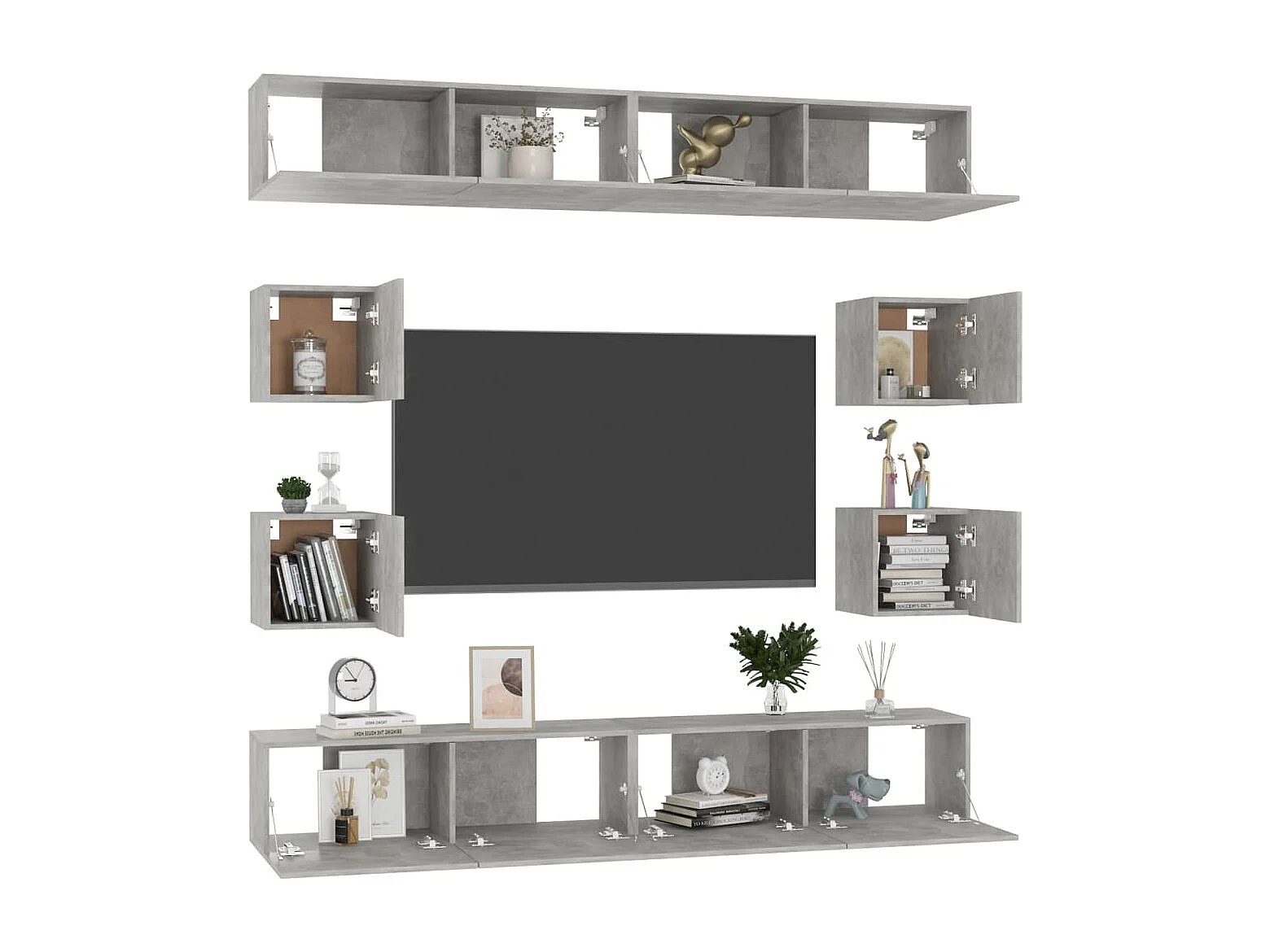 Ensemble de meubles TV 8 pièces Gris béton Aggloméré
