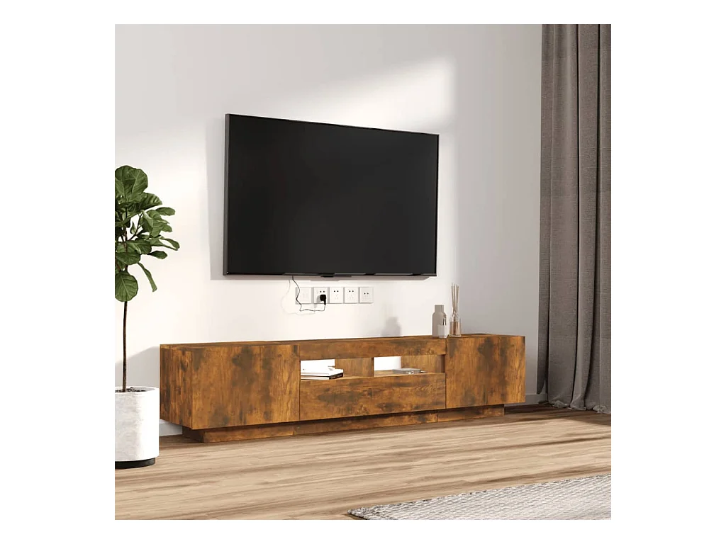 Meuble TV avec lumières LED Chêne fumé 120x35x40 cm