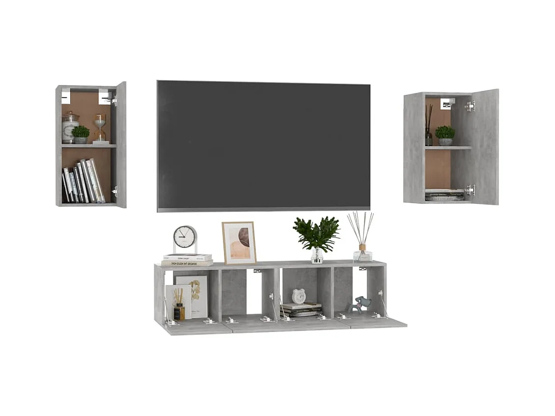 Ensemble de meubles TV | Bancs TV | Armoires TV 4 pcs Gris béton Bois d'ingénierie