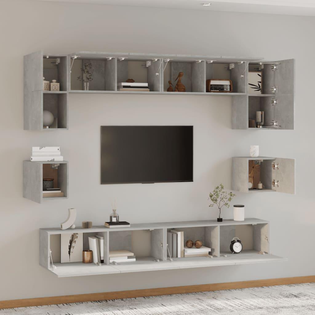 Ensemble de meubles TV | Bancs TV | Armoires TV 8 pcs Gris béton Bois d'ingénierie