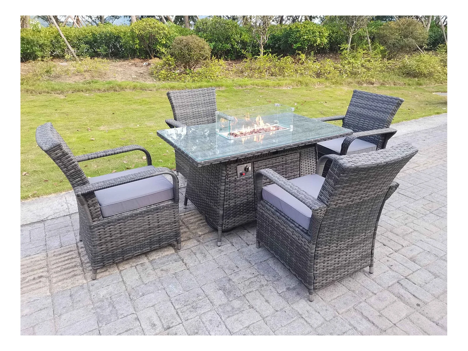 Ensemble De Mobilier 4 Chaise et Rectangulaire Table de foyer à gaz PE Rotin Mélange gris foncé