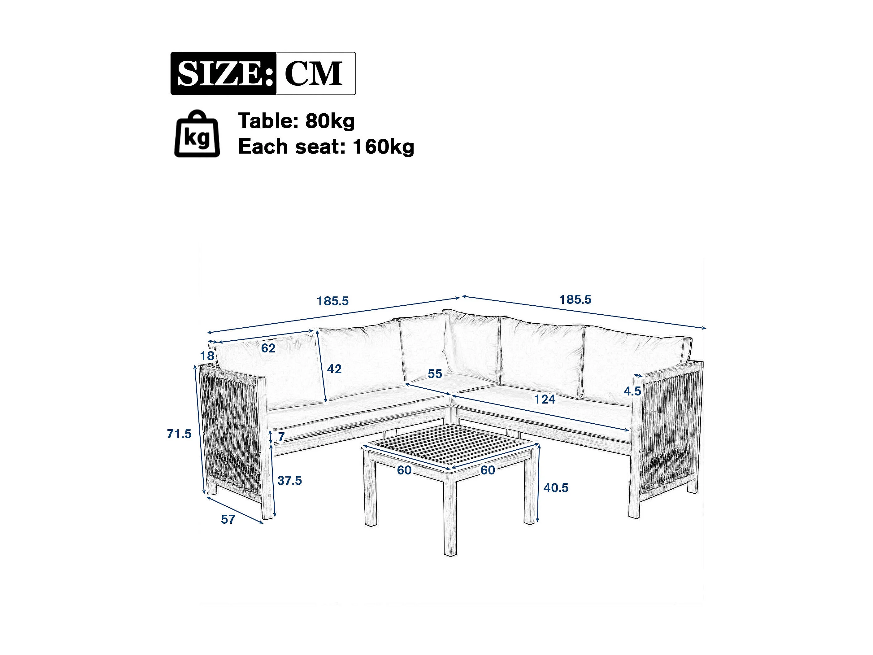 Ensemble de mobilier de jardin - 185.5 x 185.5 x 71.5 - avec canapé d'angle + table basse - acacia - beige