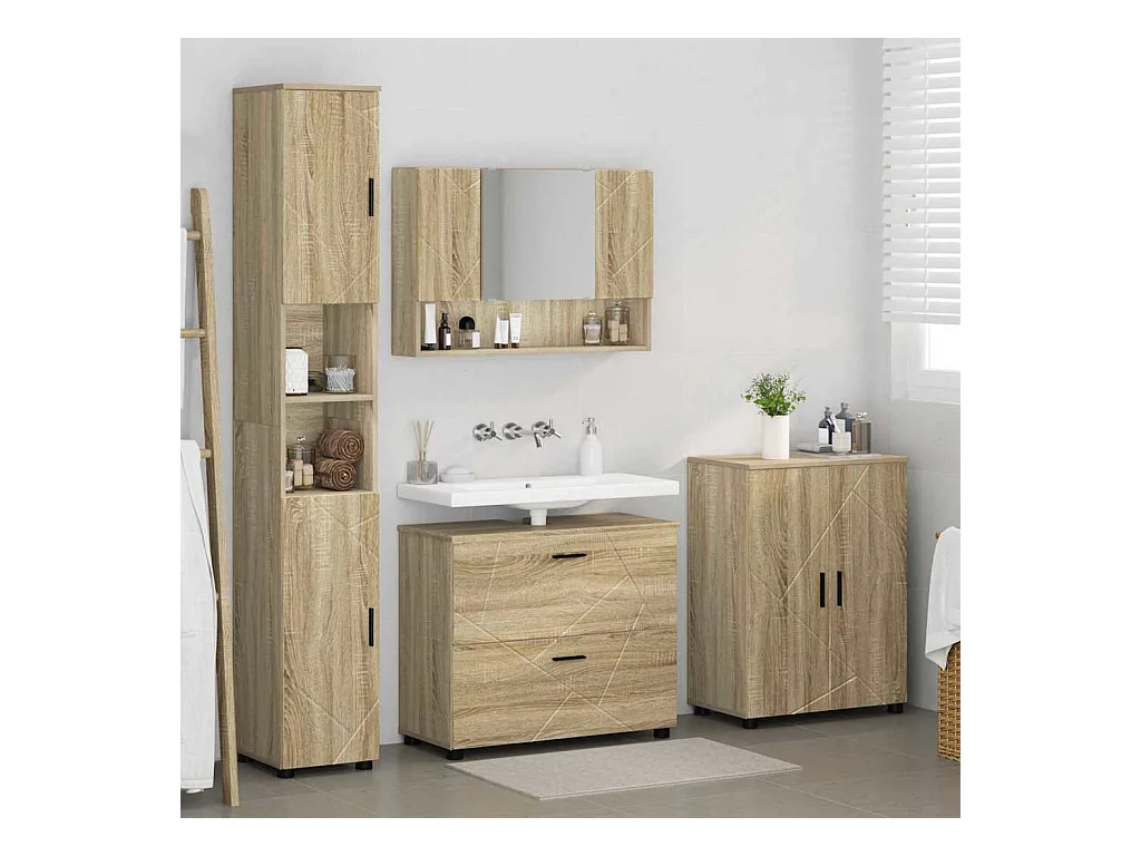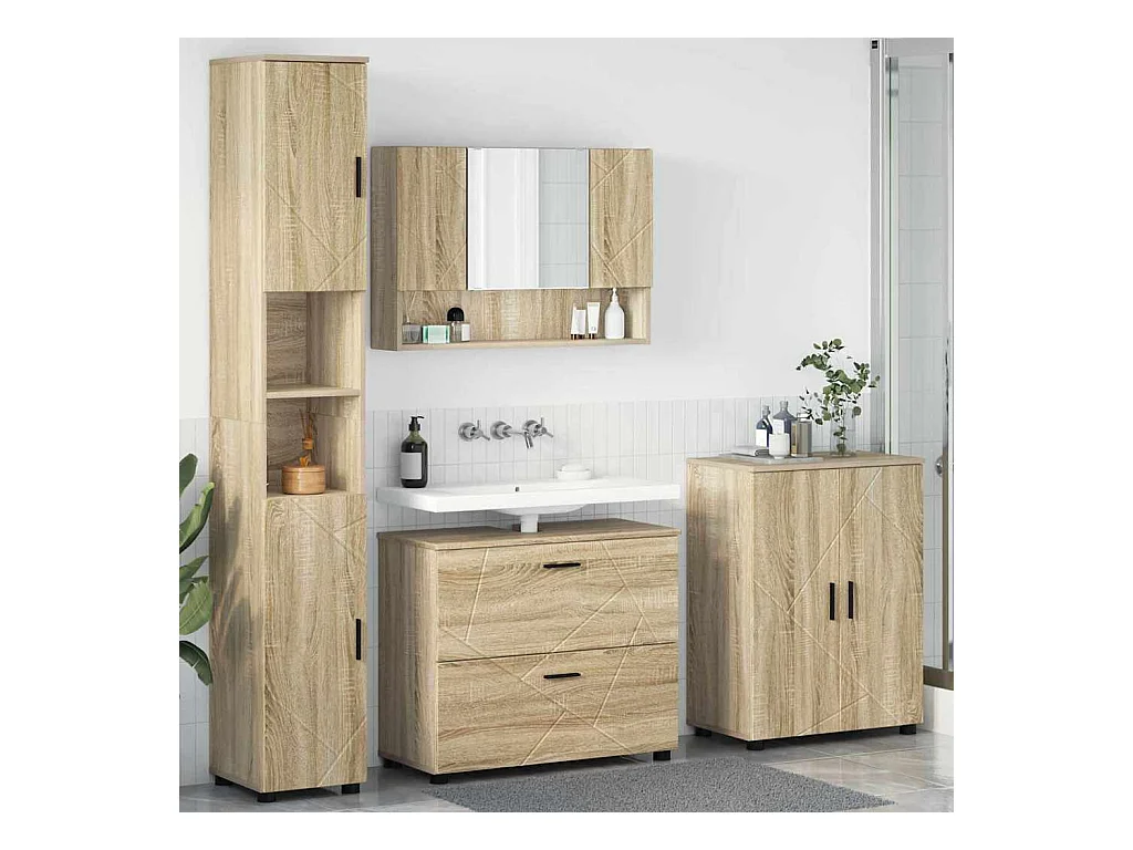 Ensemble de mobilier de salle de bain 4 pcs Chêne sonoma