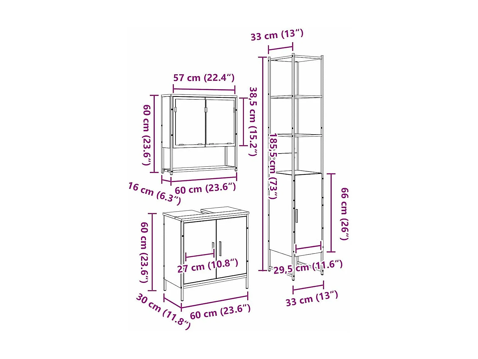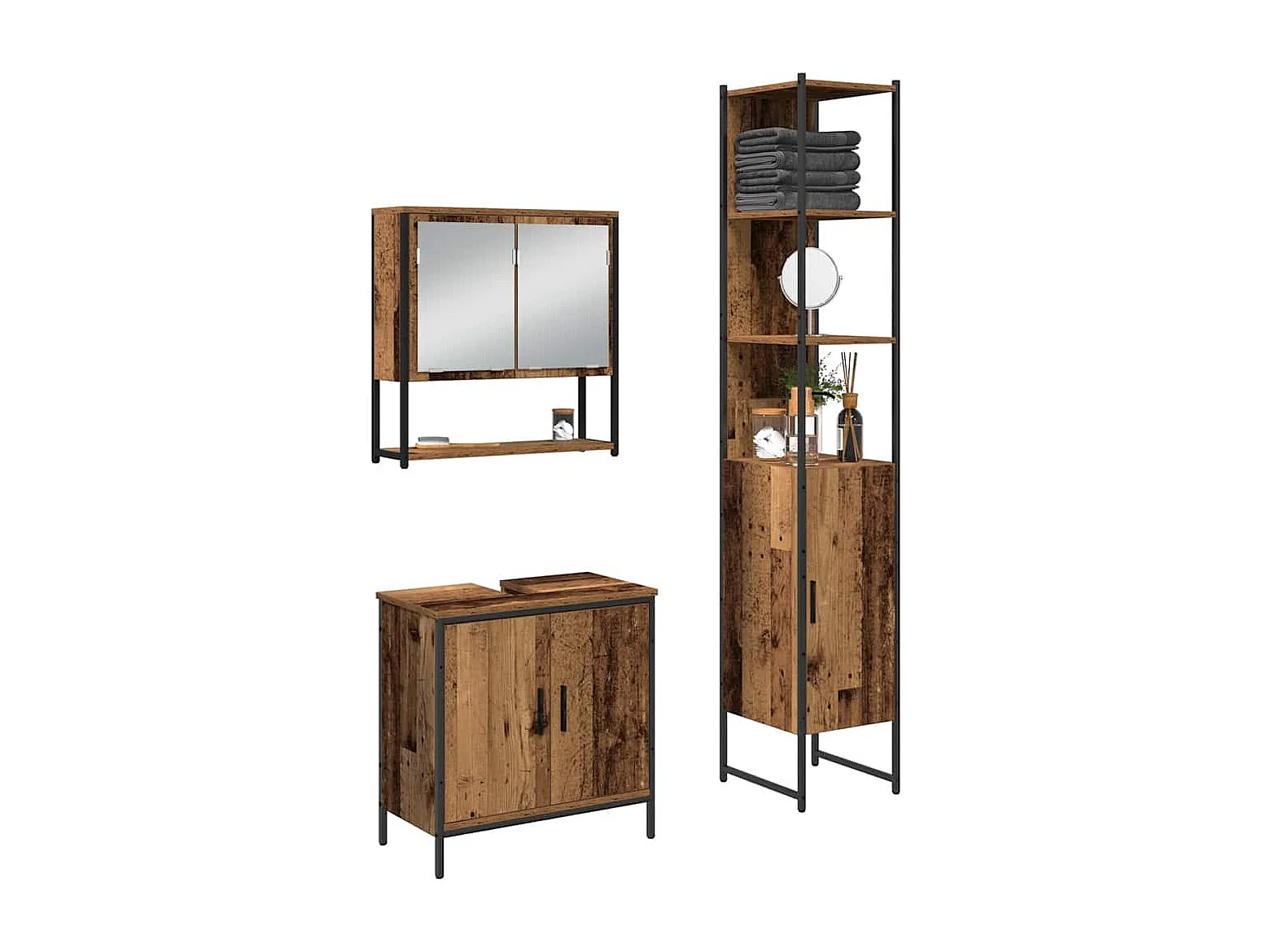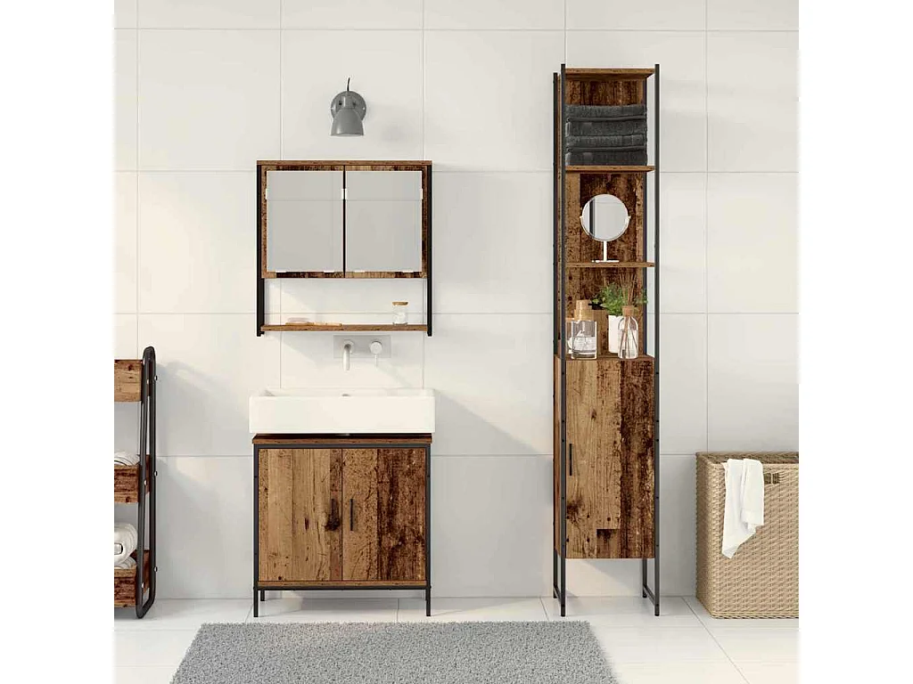 Ensemble de mobilier de salle de bain avec étagère 3 pcs Marron