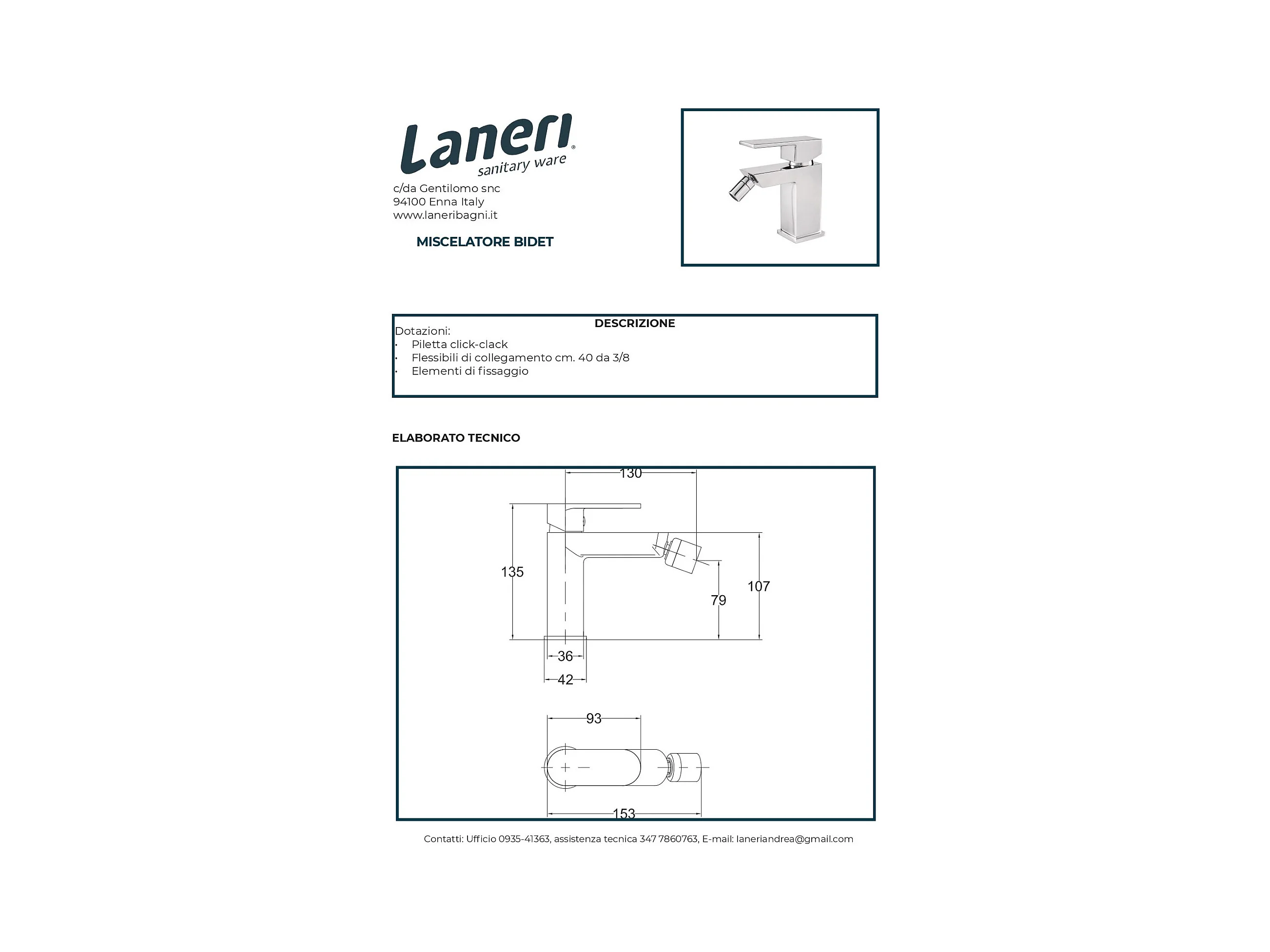 Ensemble de robinet de salle de bain design, carré et moderne avec vidage clic-clac inclus – MITIGEUR BIDET