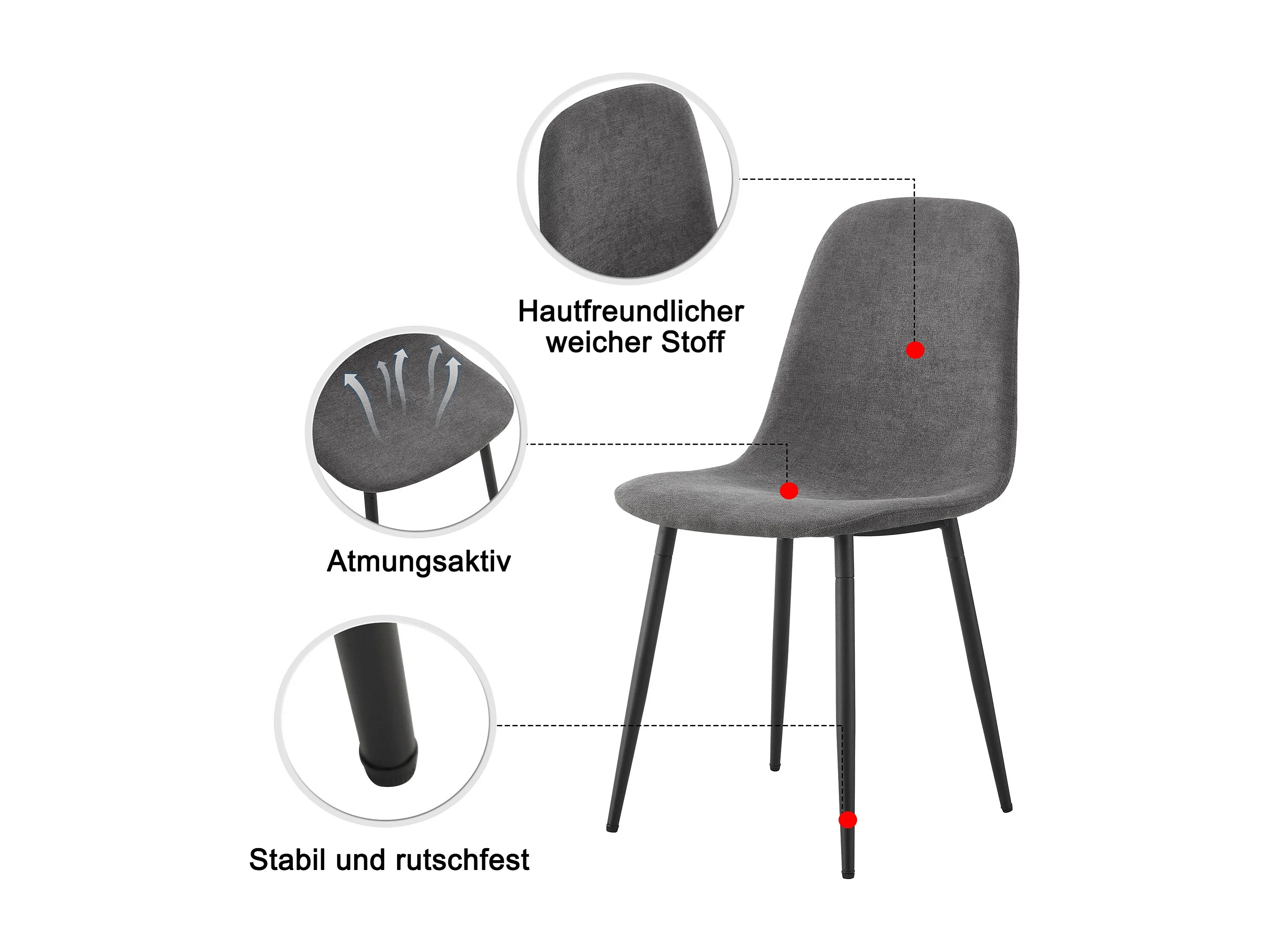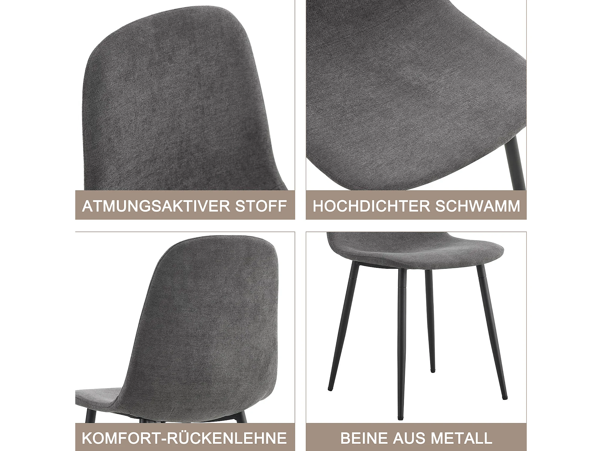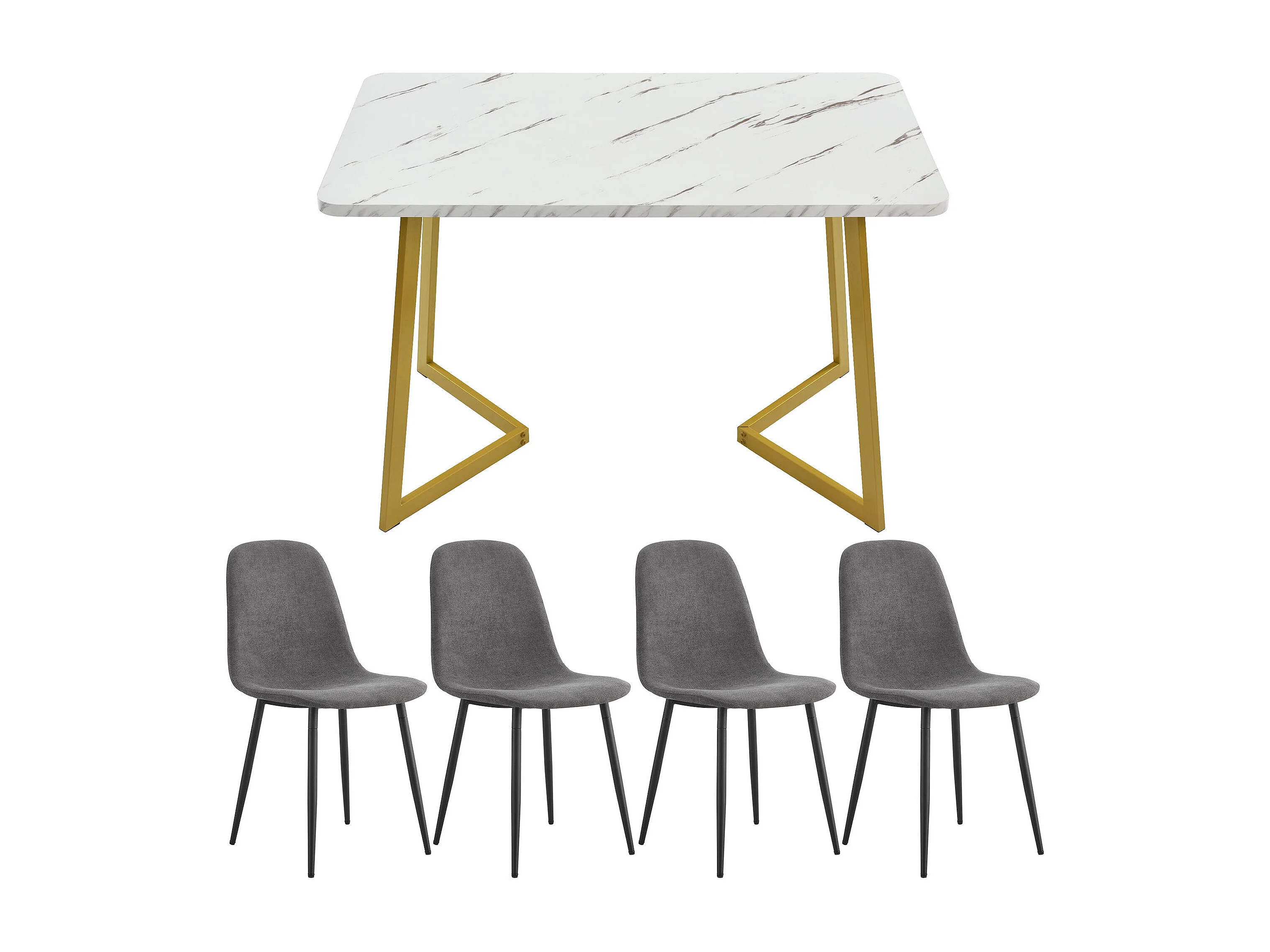 Ensemble de salle à manger (5 pièces) - 1 table et 4 chaises - chaises avec dossier - pieds de table dorés - MDF - gris + doré