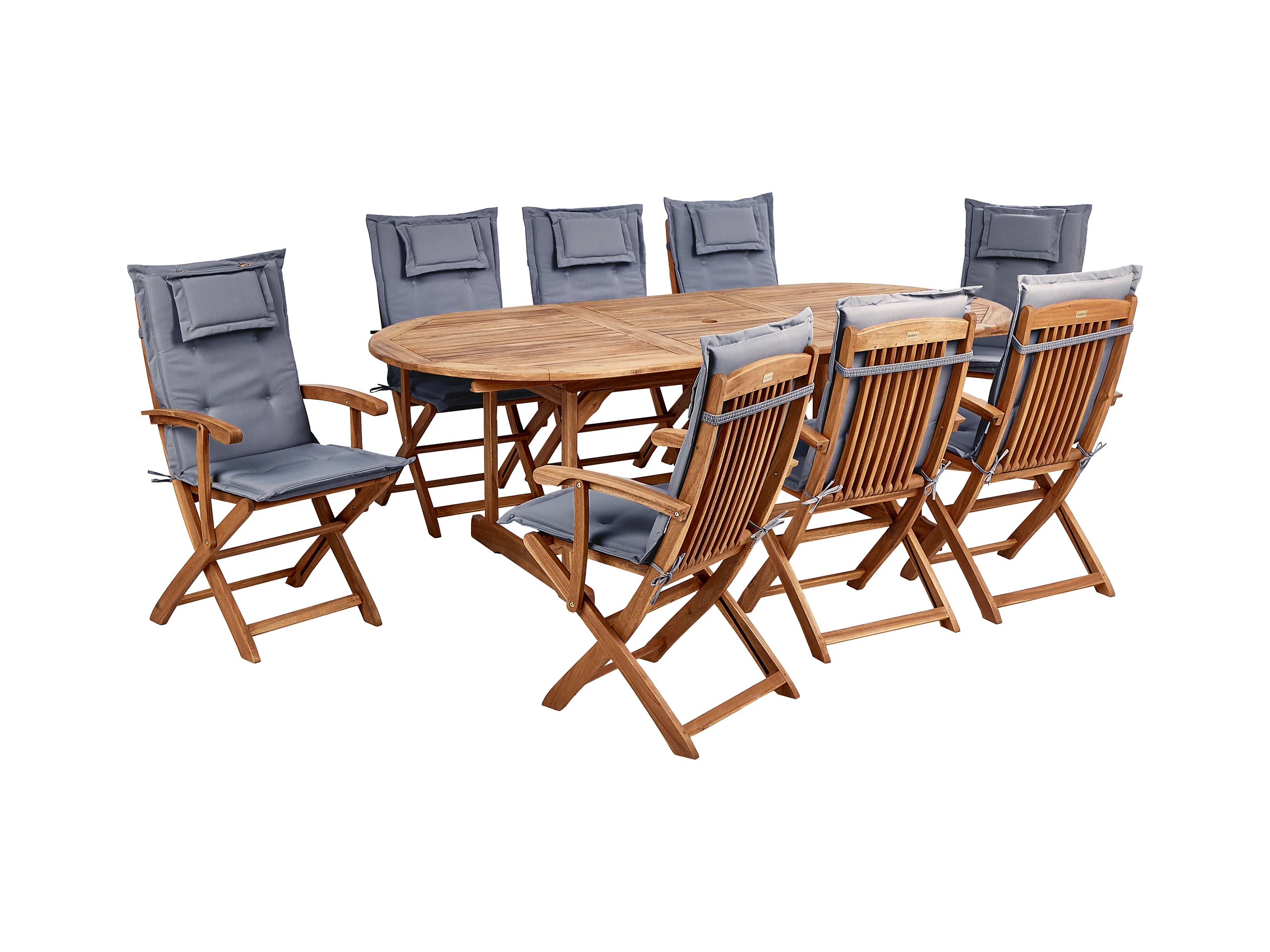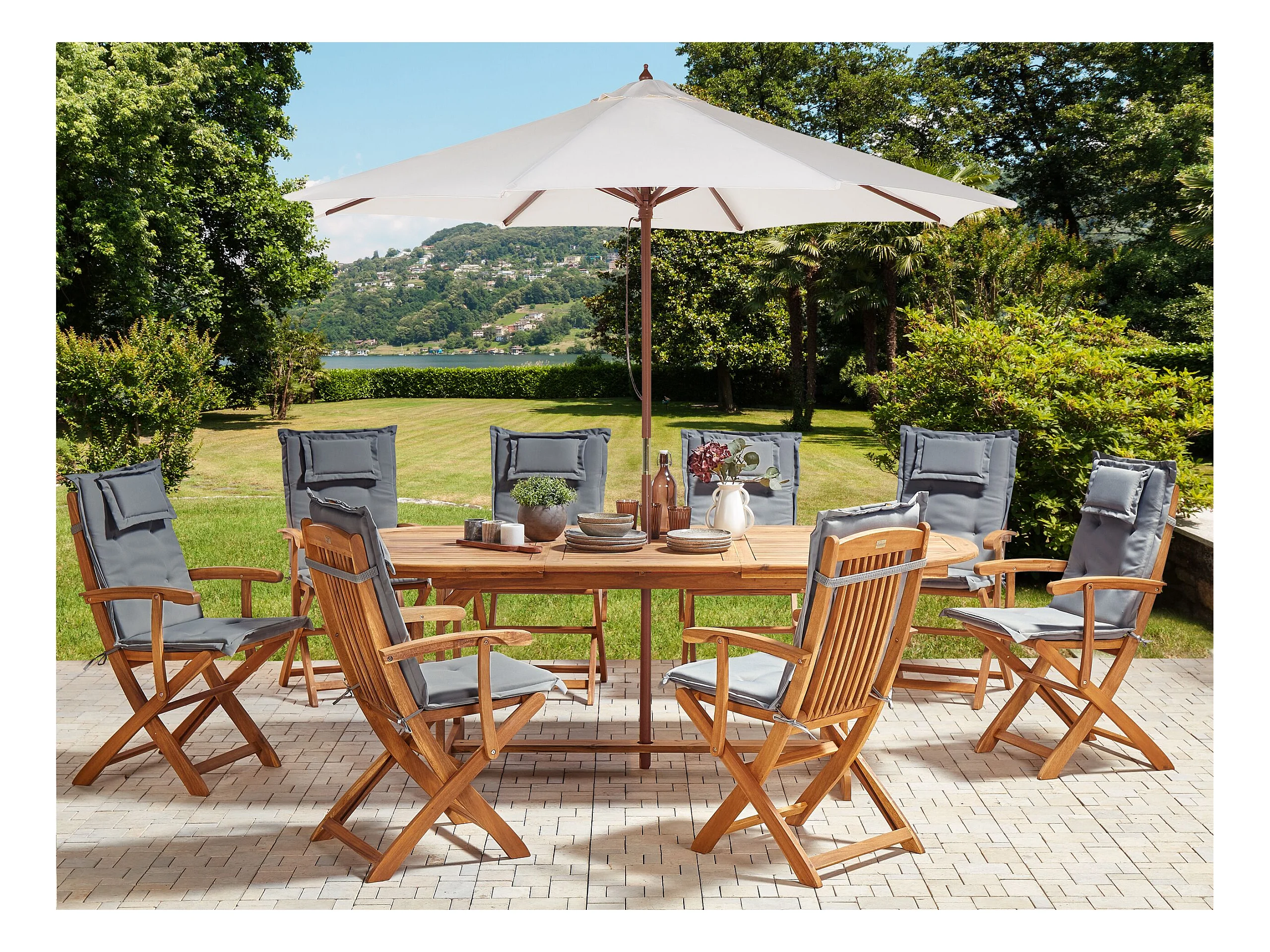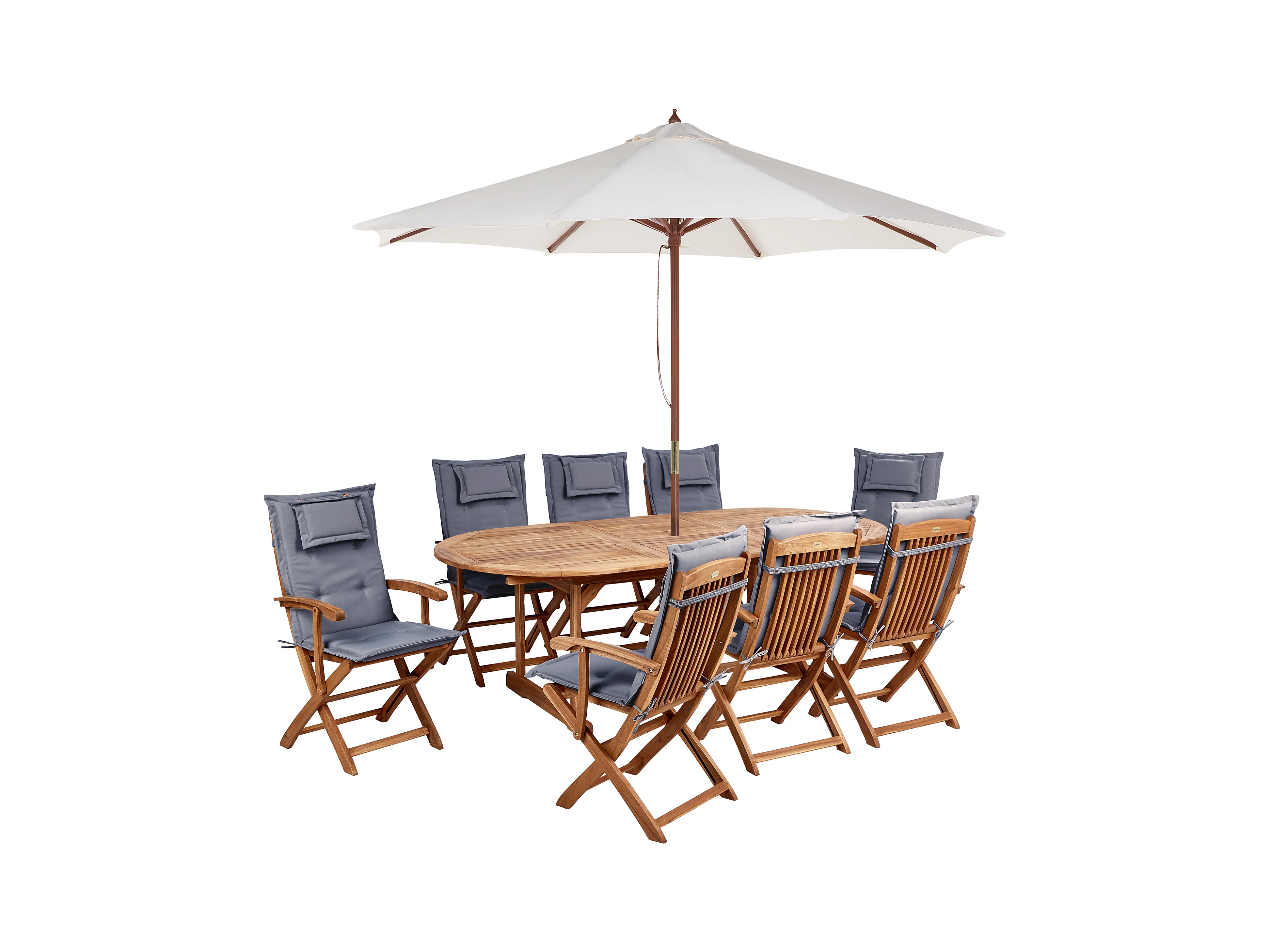 Salle à manger de jardin 8 places MAUI II avec parasol Acacia Gris graphite