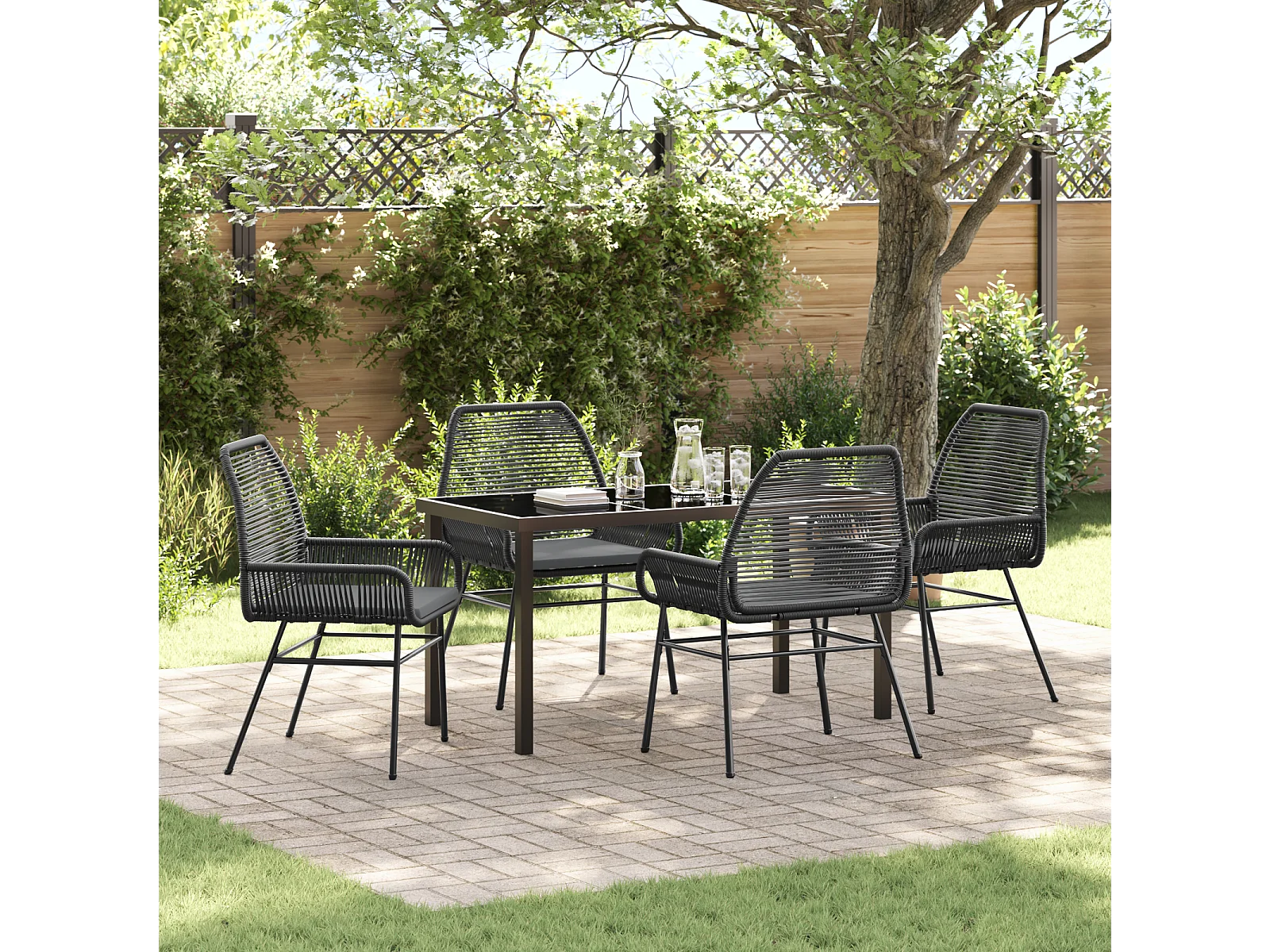 Ensemble de salle à manger de jardin 5 pièces avec coussins Noir Rattan Poly