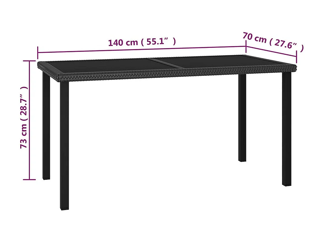 Ensemble à manger de jardin 7 pcs Résine tressée Noir