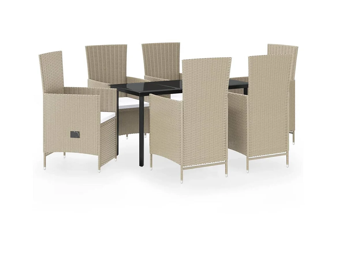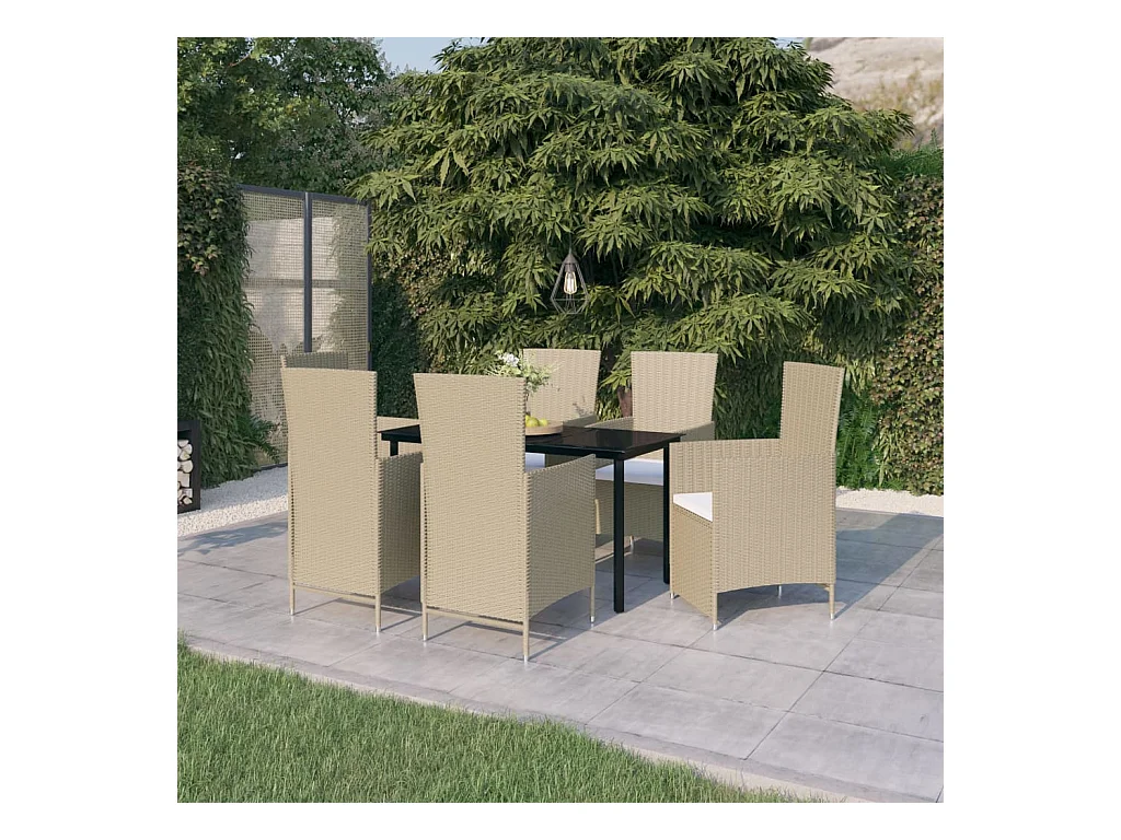 Ensemble de salle à manger de jardin avec coussins 7 pcs Beige 2