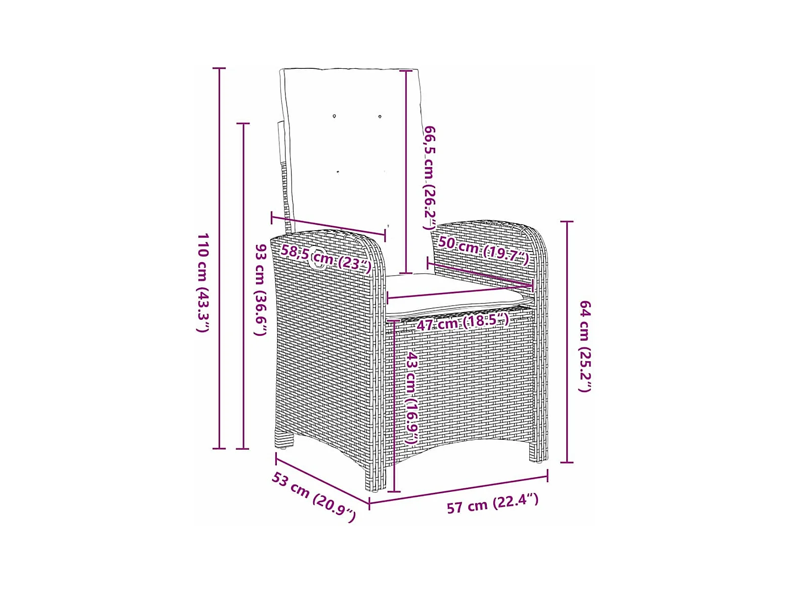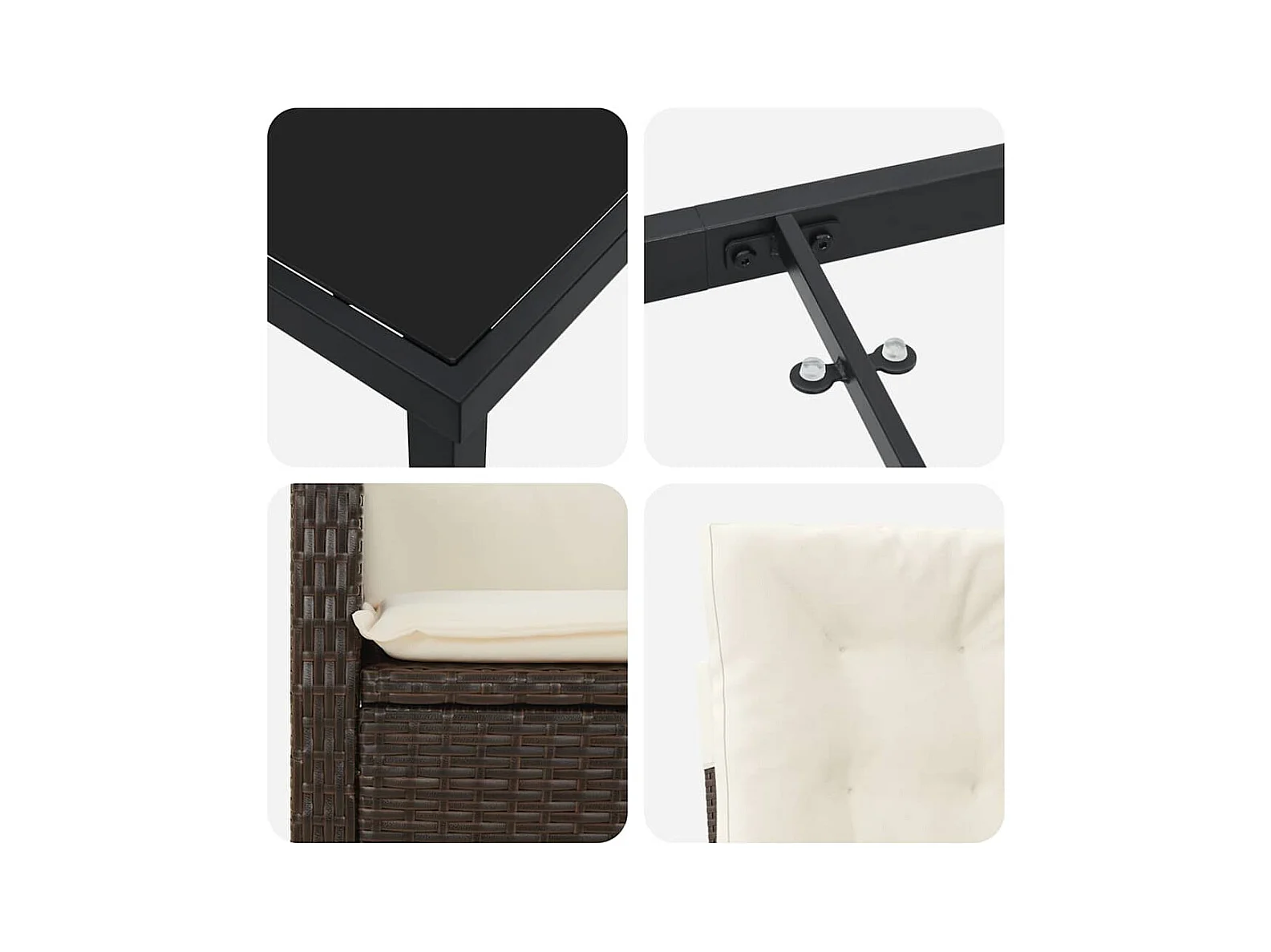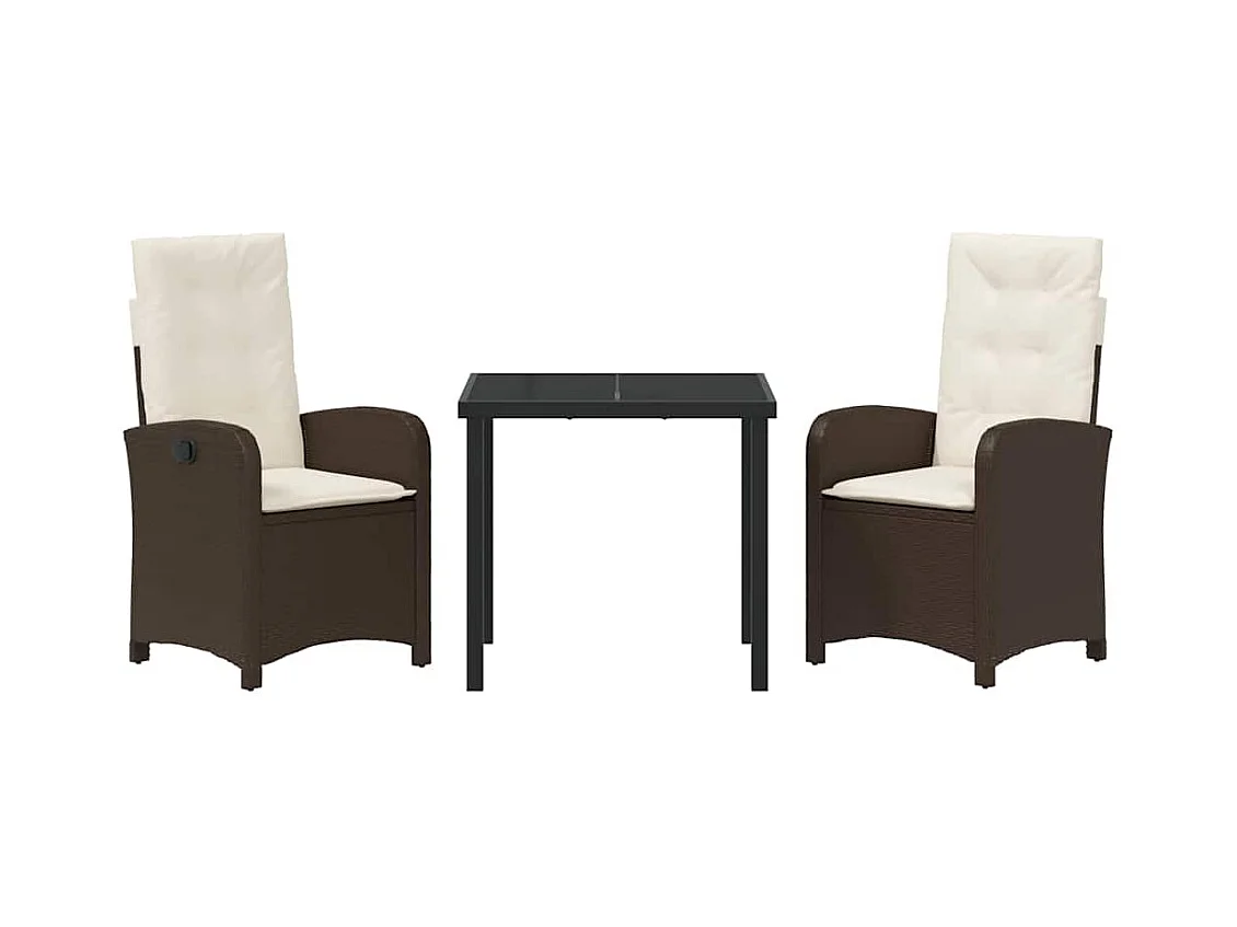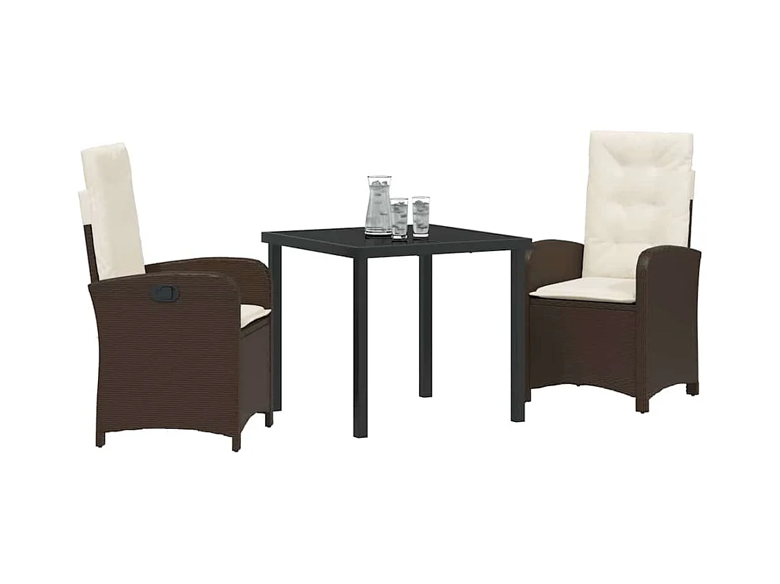 Ensemble de salle à manger de jardin de 3 pièces avec coussins - Rattan poly marron