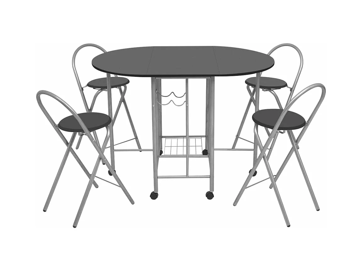 Ensemble de salle à manger pliable 5 pièces MDF noir