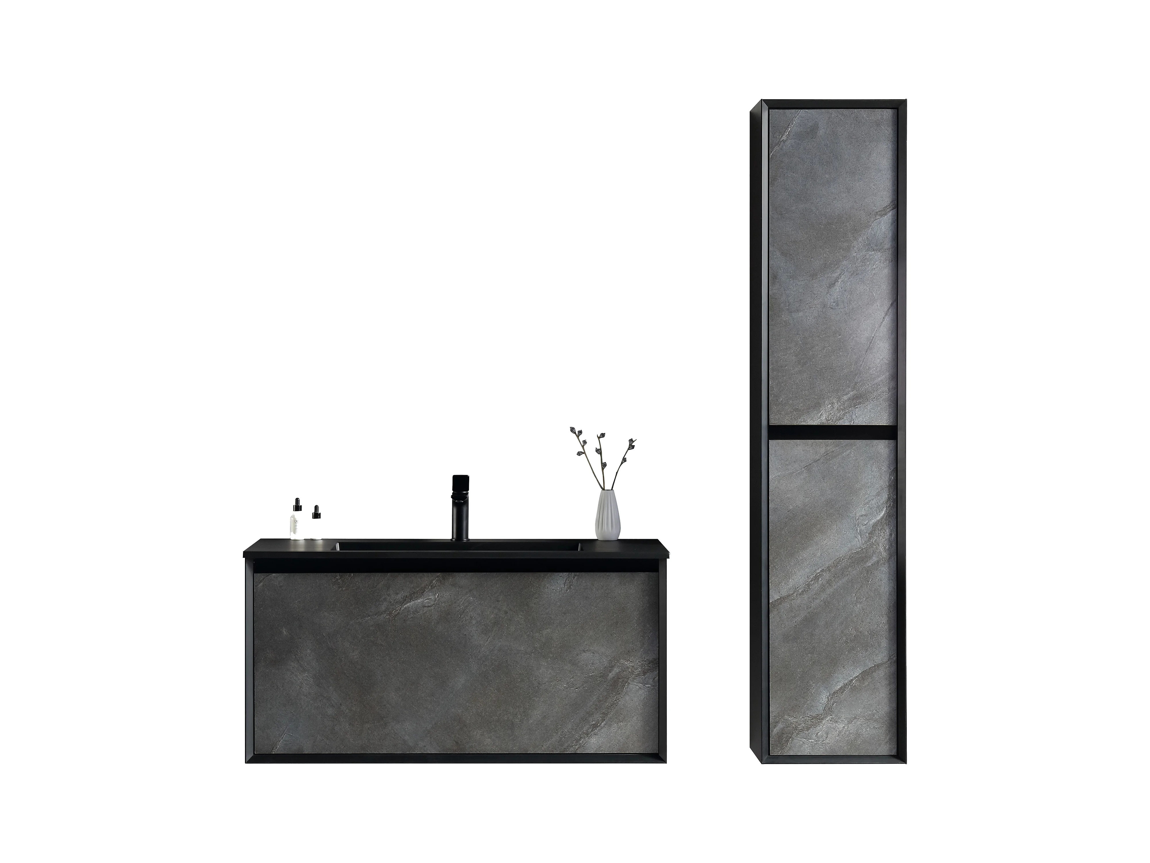 Ensemble salle de bain 100 cm noir effet marbre Aquasasso