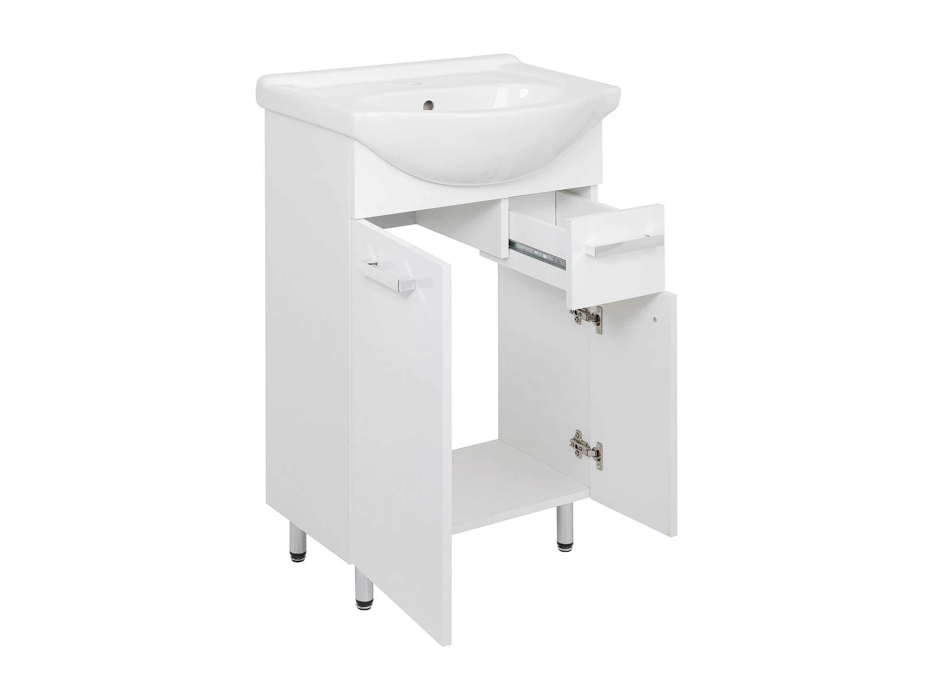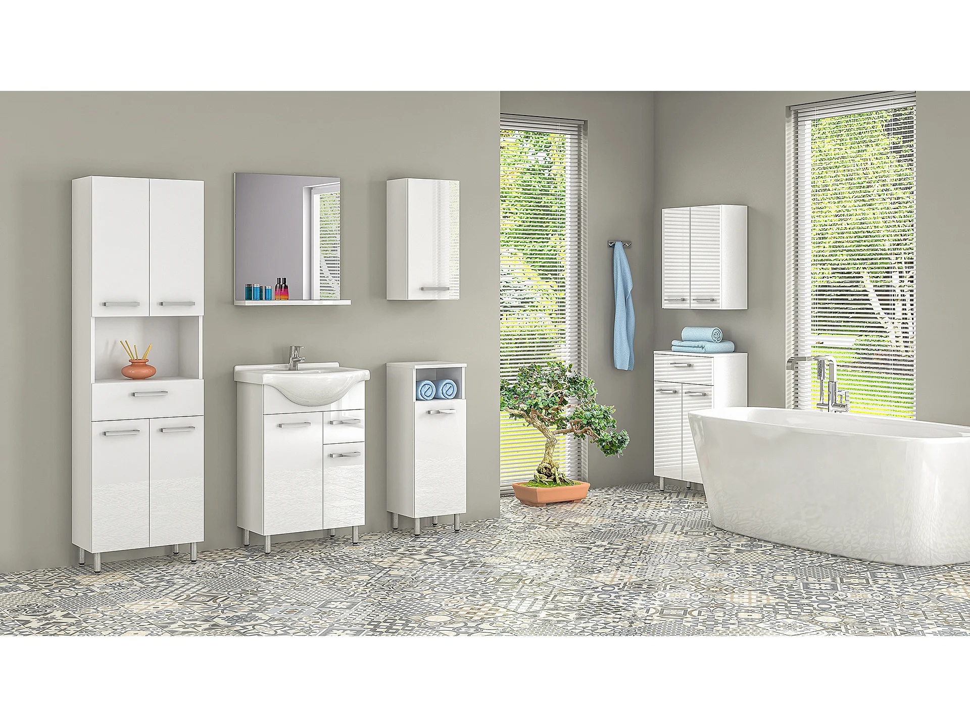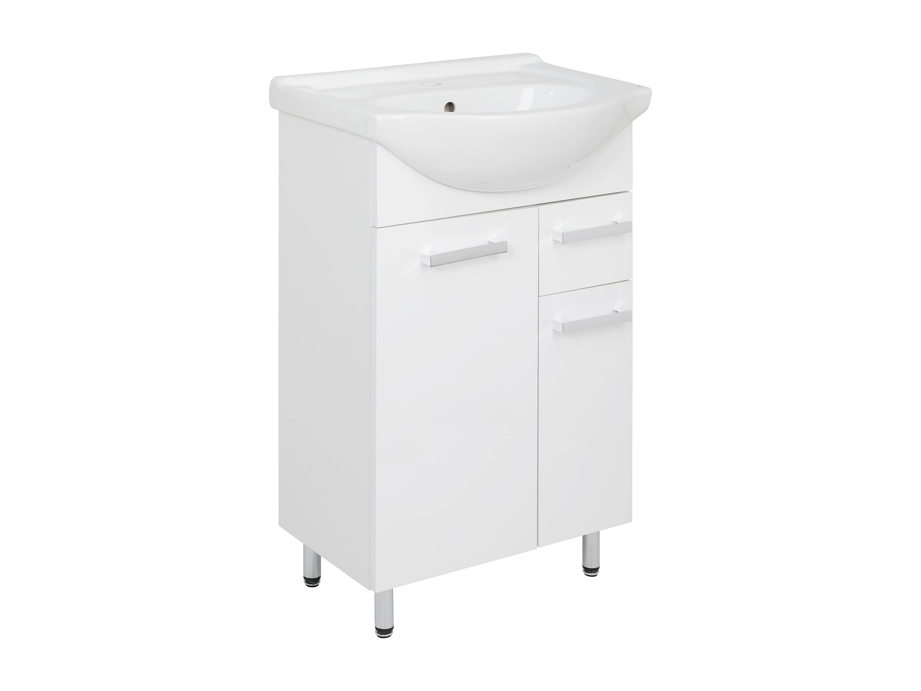 Ensemble de salle de bain blanc sur pied 55 cm Meuble avec lavabo Colonne 50 cm Demi-colonne Meuble haut Lupo