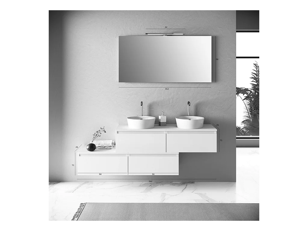 Ensemble de salle de bain double vasque 8 pièces ASTRA blanc