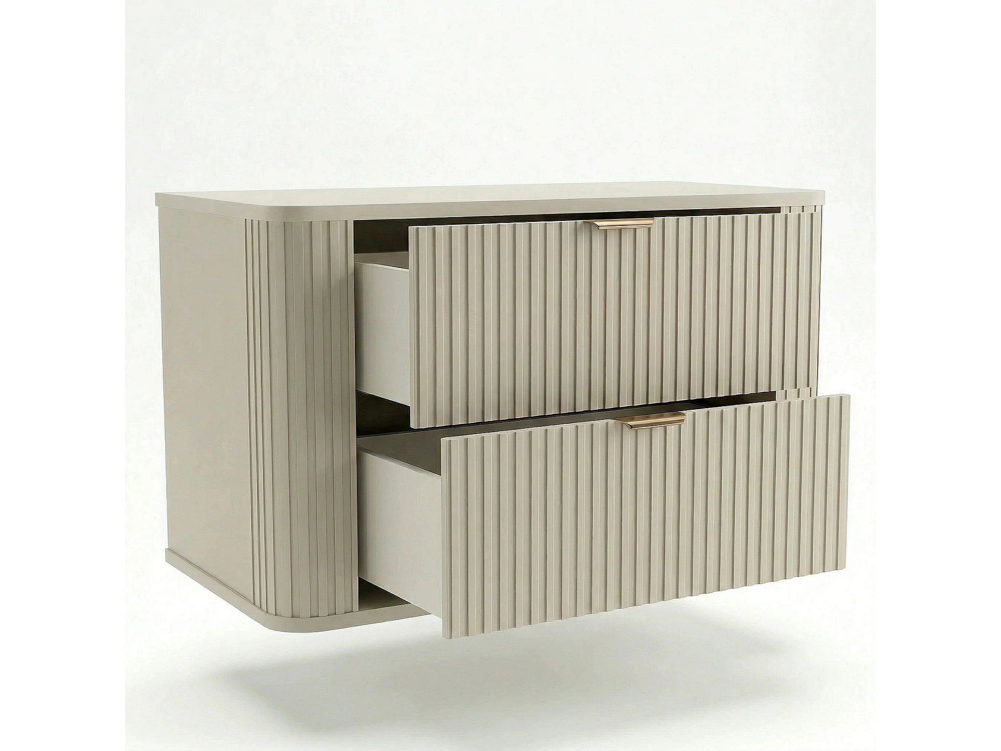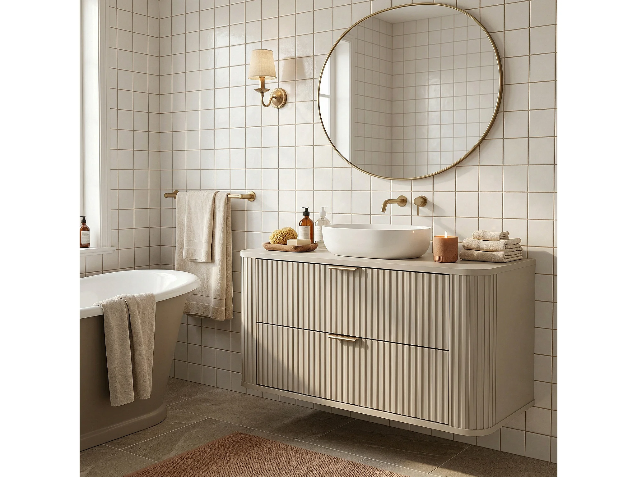 Ensemble de salle de bain en cachemire 100 cm Armoire avec plateau Colonne Façades rainurées Selvea