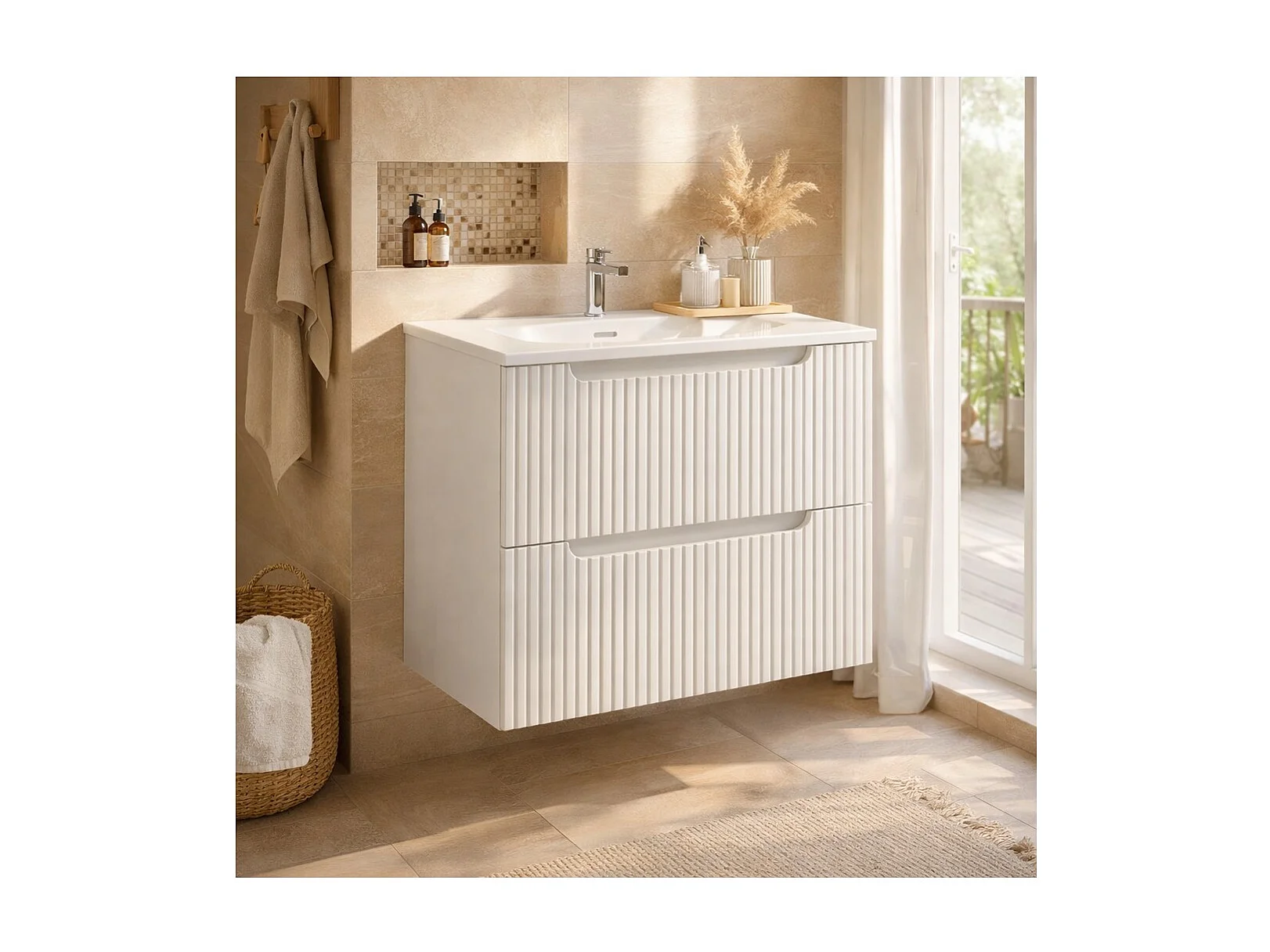 Ensemble de salle de bain suspendu VANO blanc 60cm : meuble sous vasque à tiroirs rainuré + vasque encastrée blanche