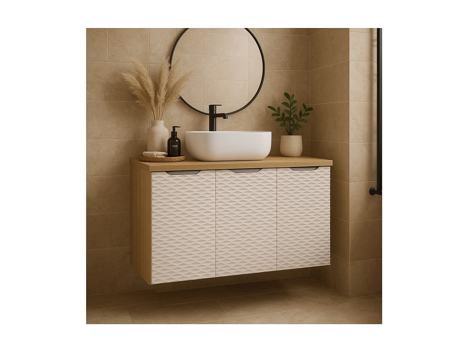 Ensemble de salle de bain YOKA beige : Meuble sous vasque 90 cm + plan pour vasque + vasque