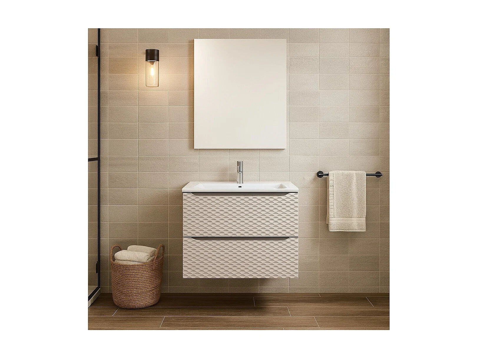 Ensemble de salle de bain YOKA beige : meuble sous vasque 90 cm + vasque encastrée