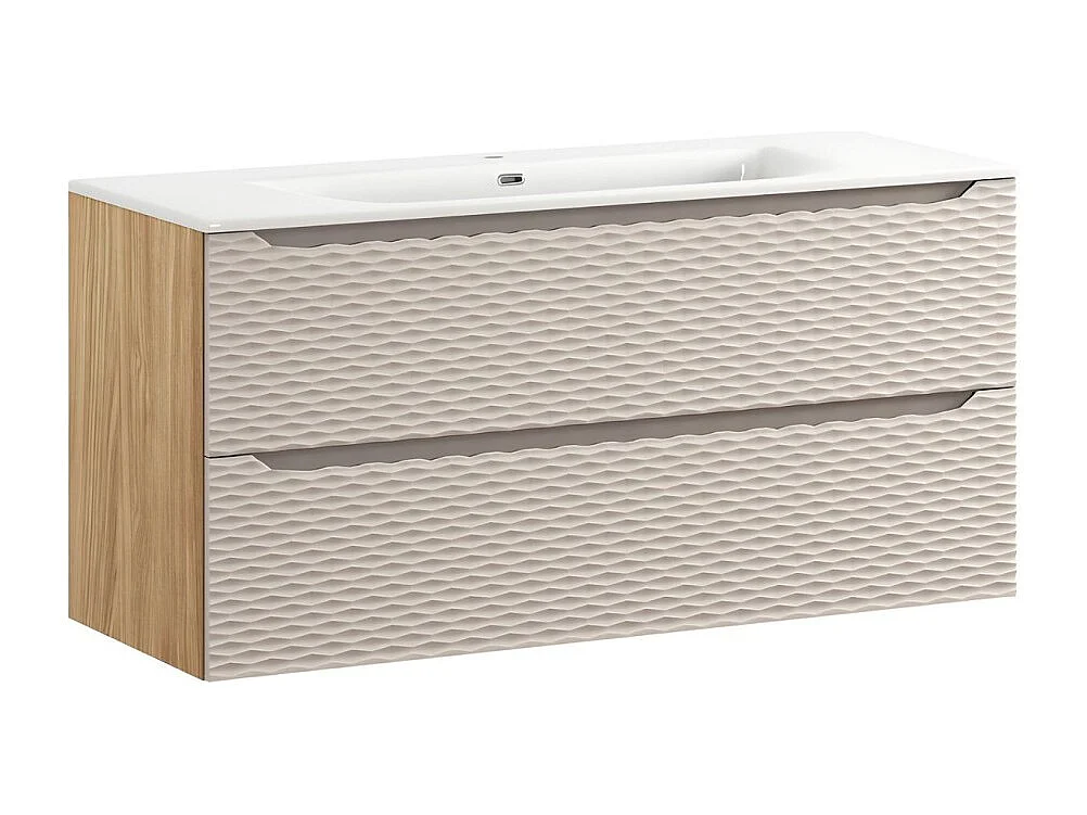 Ensemble de salle de bain YOKA beige : meuble sous vasque à tiroirs 120 cm + vasque encastrée