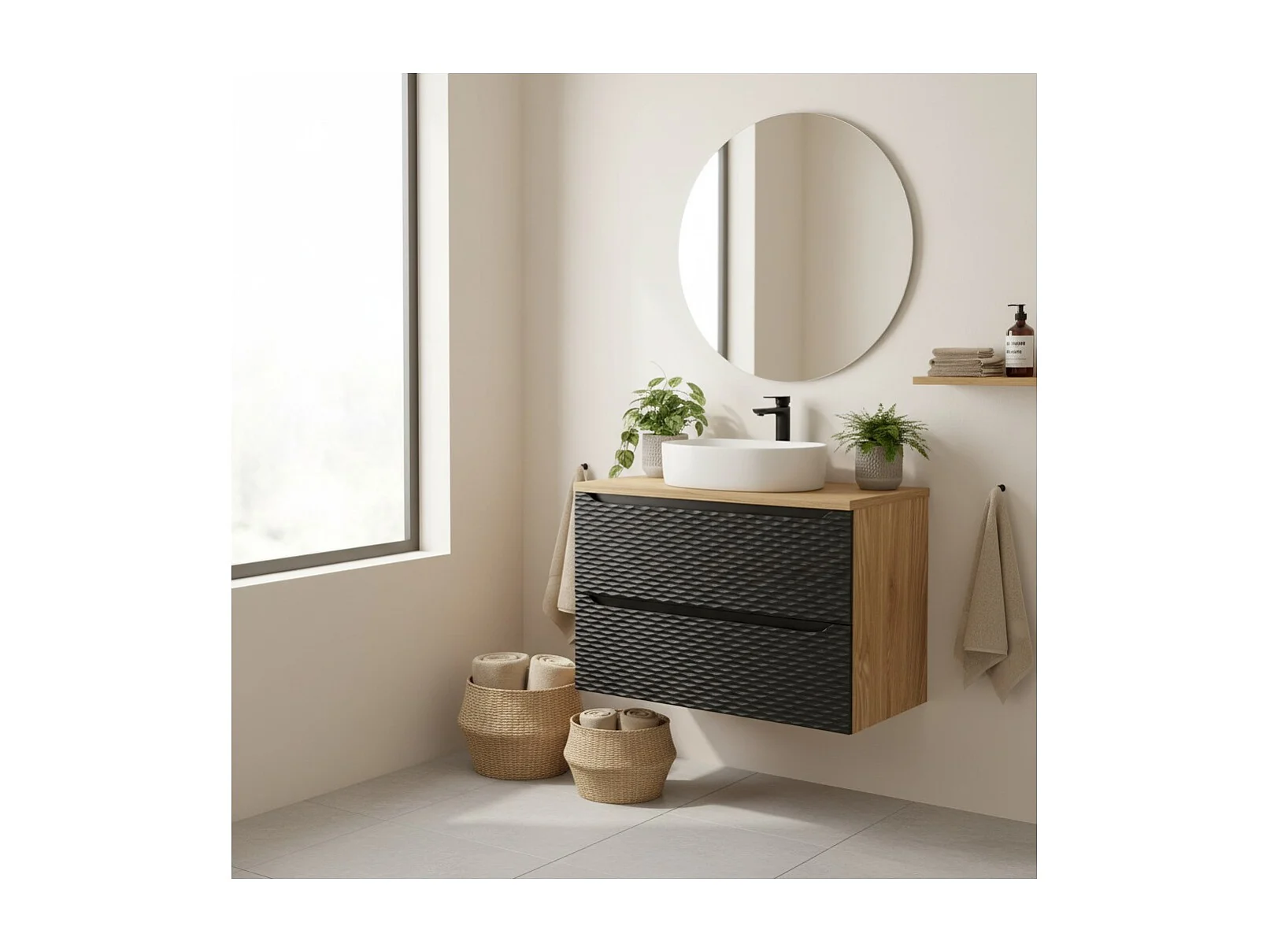 Ensemble de salle de bain YOKA noir : meuble sous vasque à tiroirs 60 cm + plan vasque