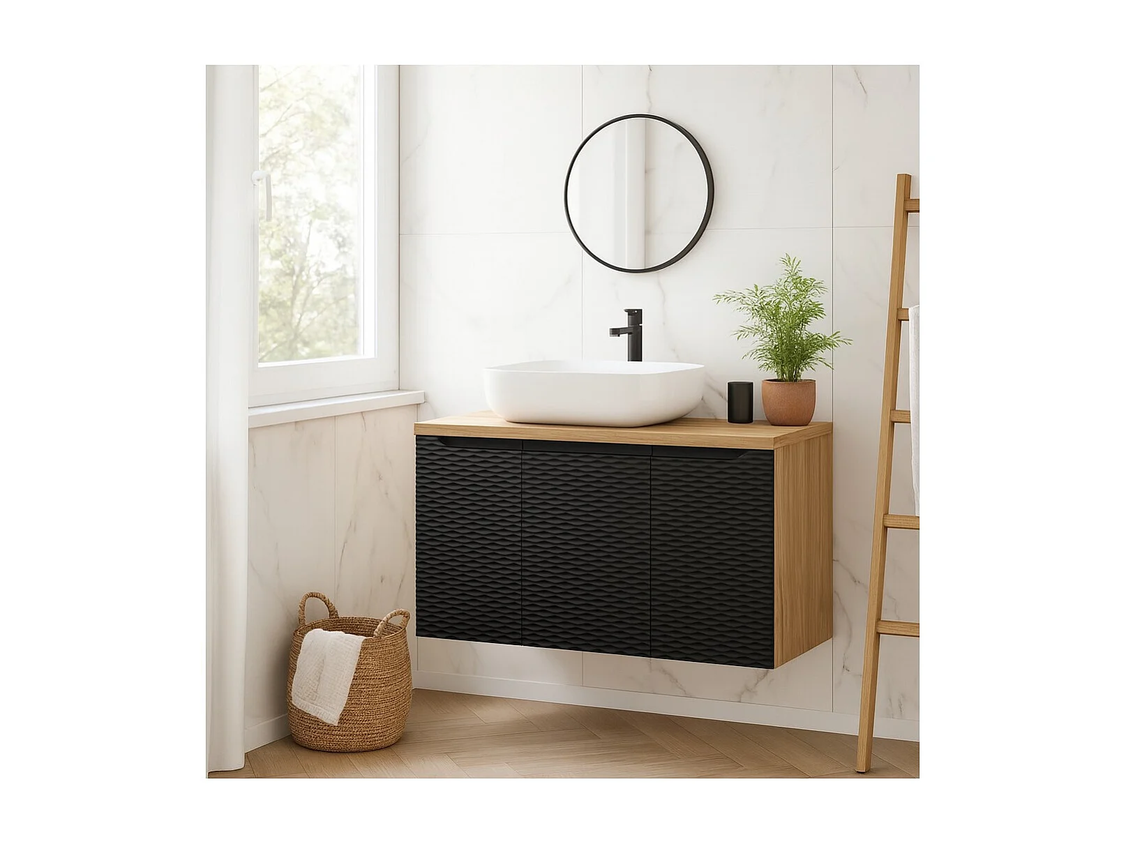 Ensemble de salle de bain YOKA noir : meubles sous vasque à placard 90cm + plan pour vasque + vasque à poser
