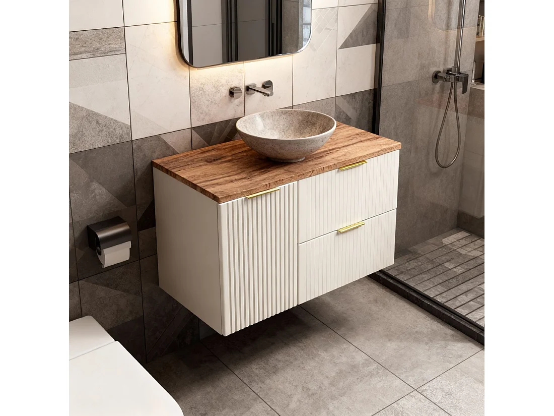 Ensemble de salle de bains NOXERA 100 cm – Marron congo et chêne wotan – plan pour vasque