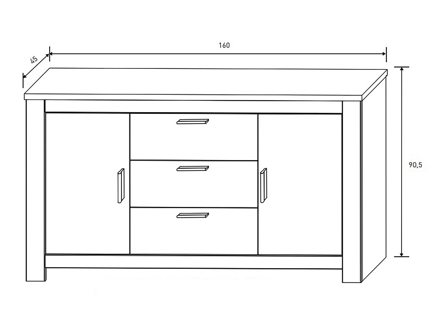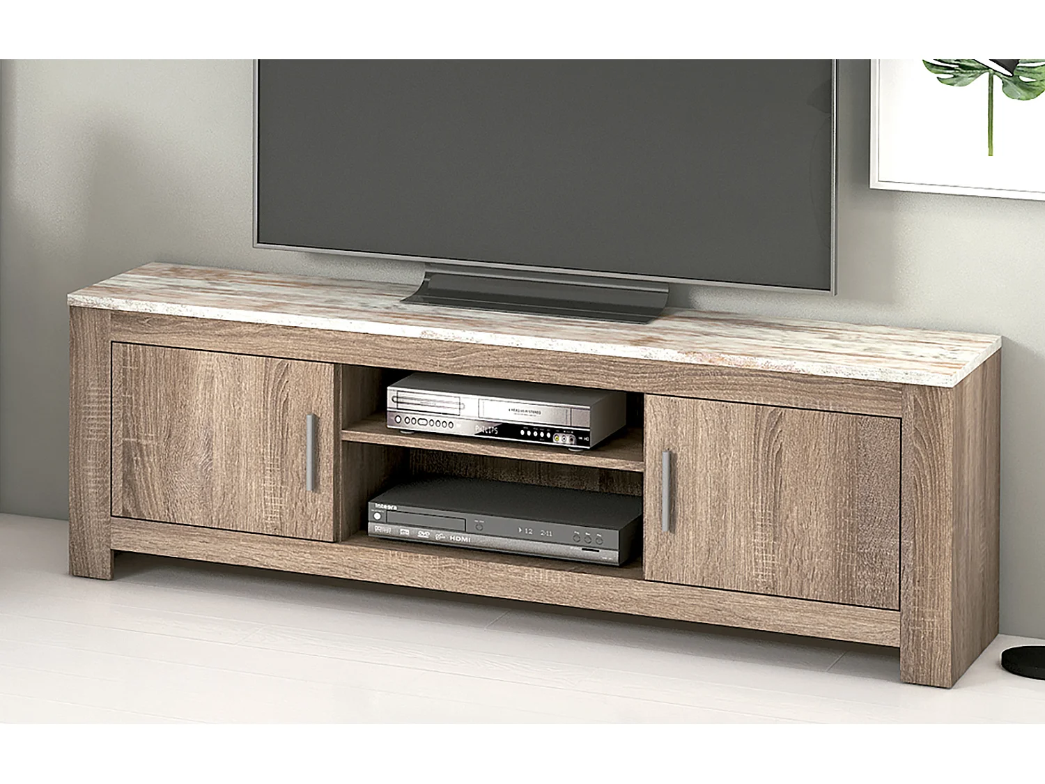 Ensemble de salon complet meuble TV, table à manger, set de 4 chaises, buffet coloris chêne truffé, blanc vieilli