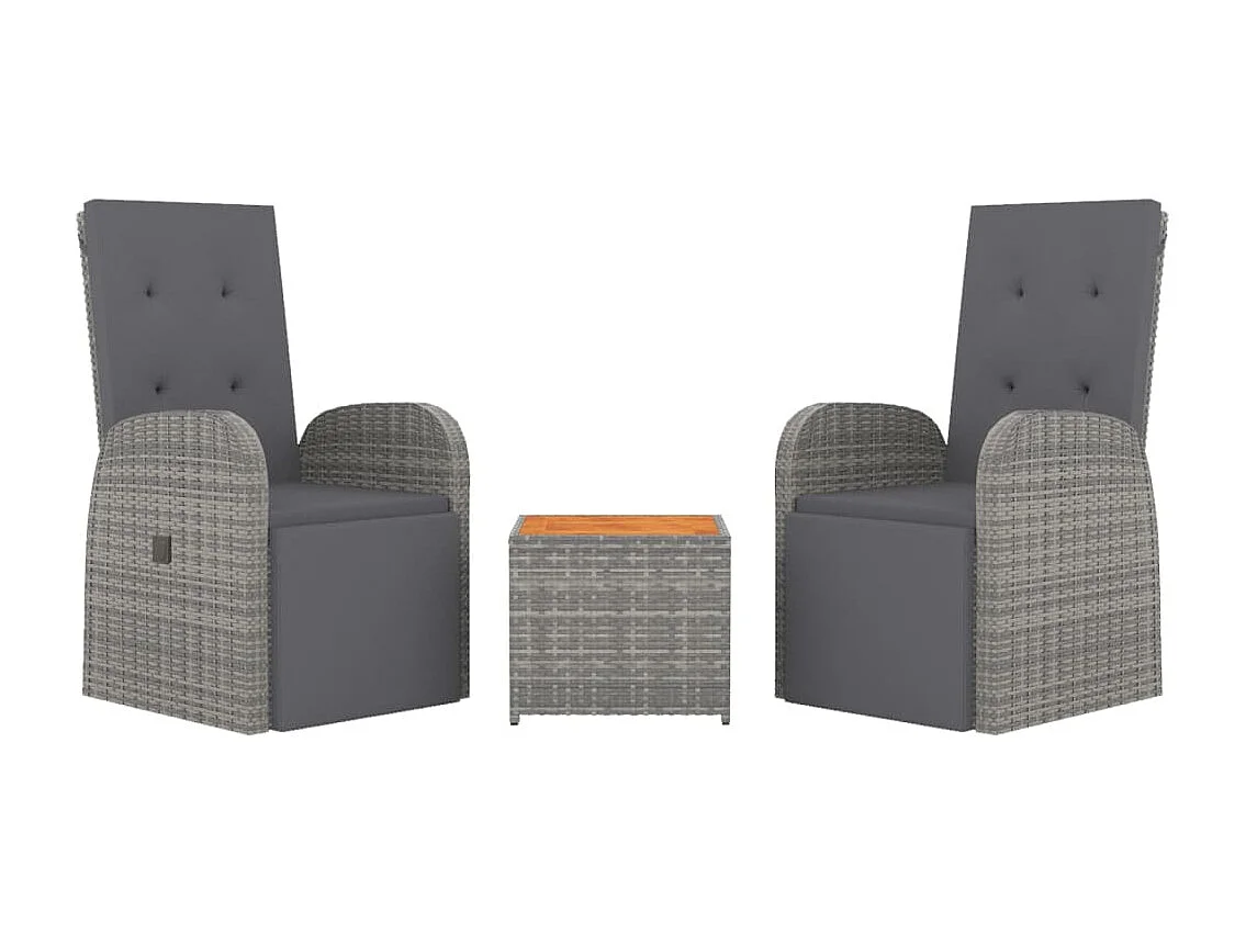 Ensemble de salon de jardin 3 pcs gris poly rotin et acacia