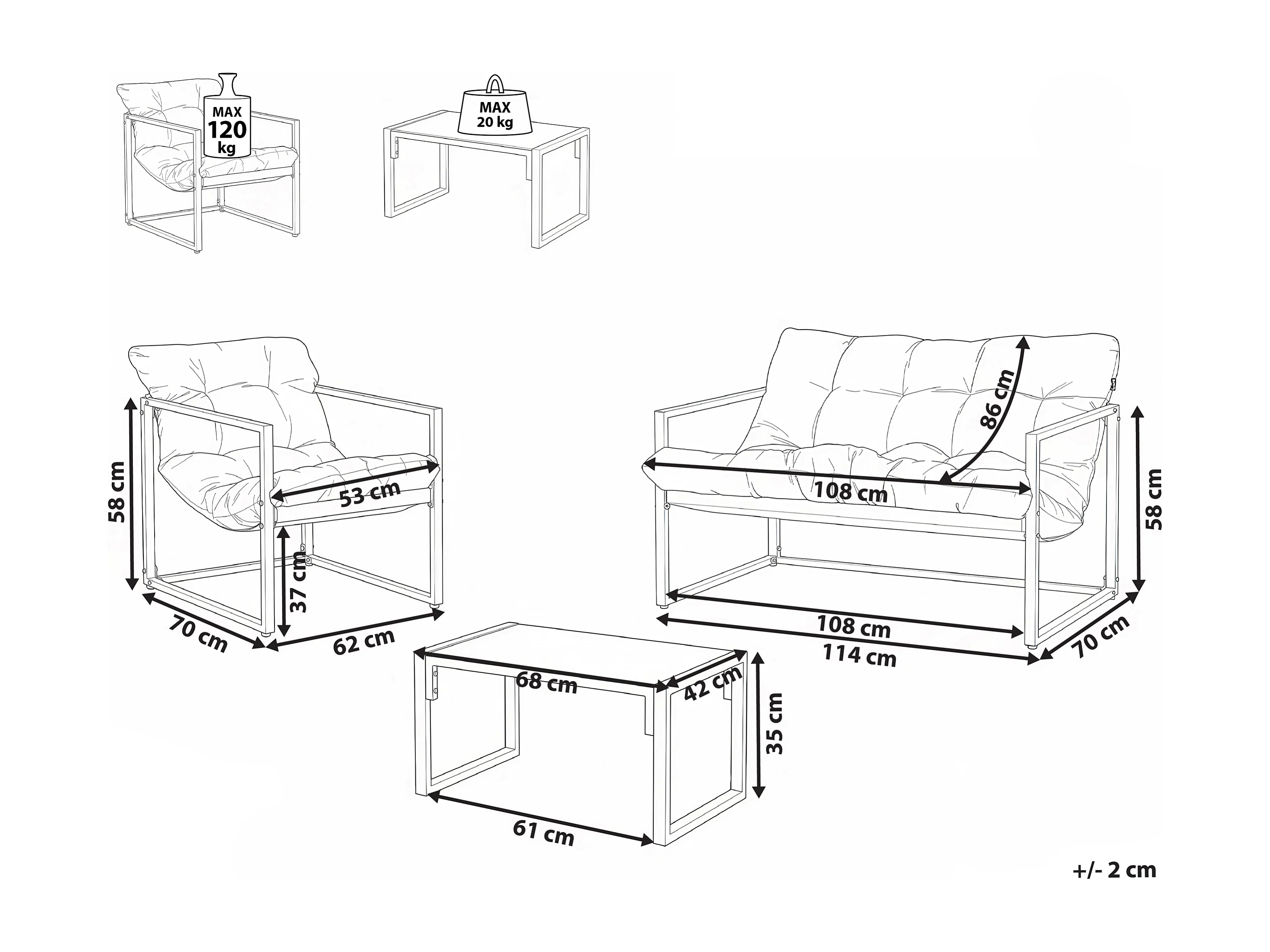 Ensemble de salon de jardin avec table 4 places GARDA Métal Beige