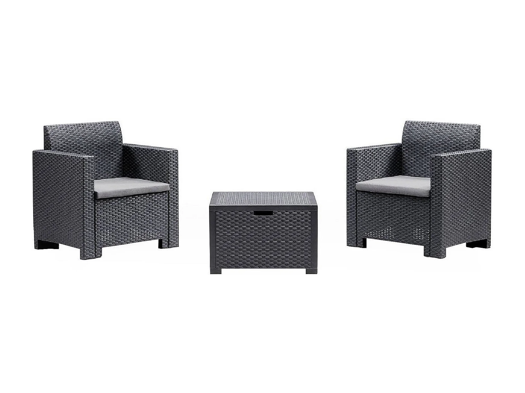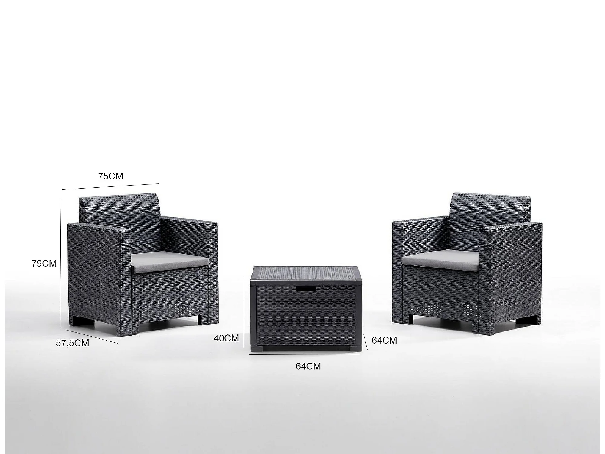Ensemble de salon d'extérieur Dkrajn, Ensemble de jardin avec coussins, Ensemble de salon d'intérieur effet rotin, 100% Made in Italy, Anthracite