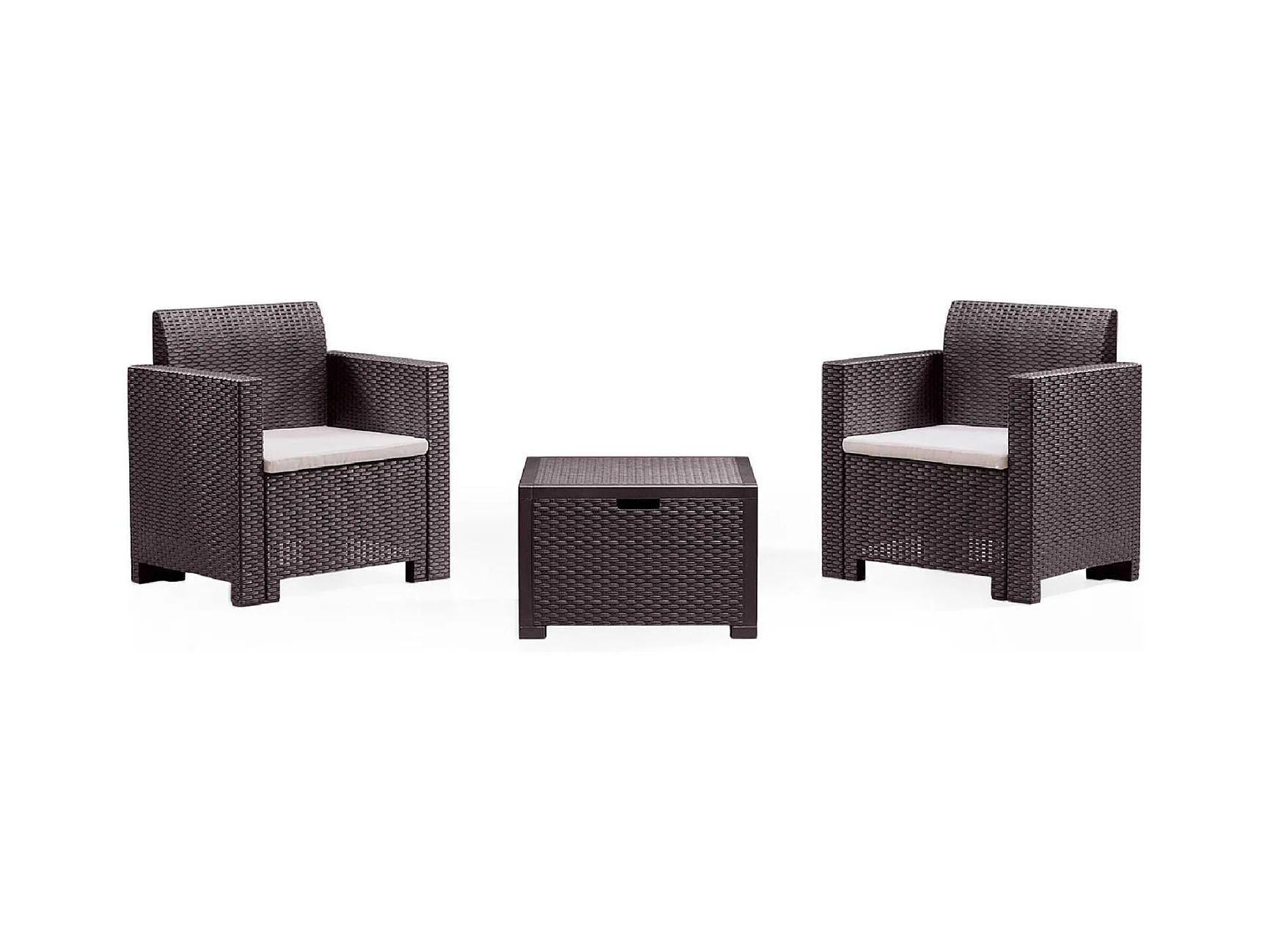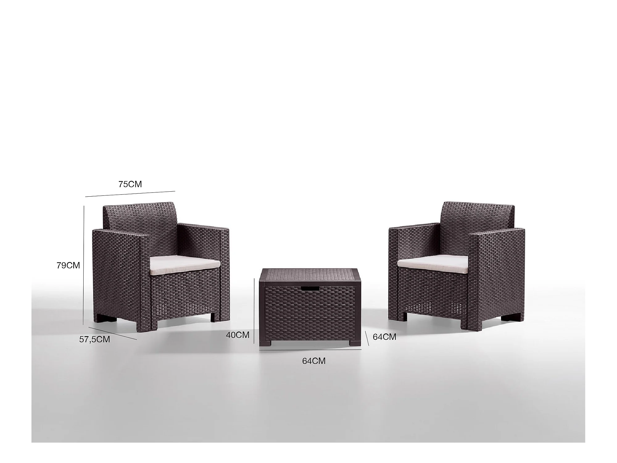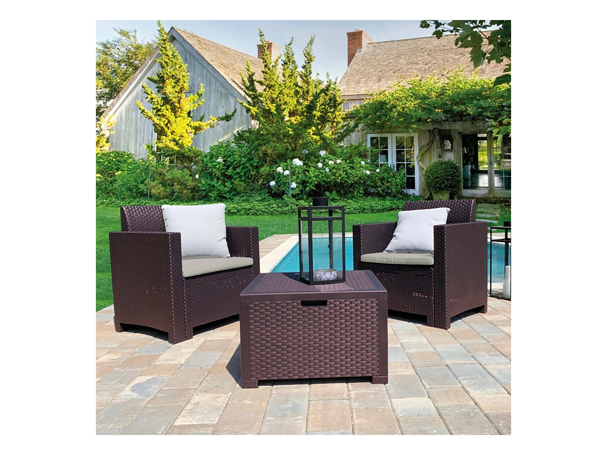 Ensemble de salon d'extérieur Dkrajn, Ensemble de jardin avec coussins, Ensemble de salon d'intérieur effet rotin, 100% Made in Italy, Marron