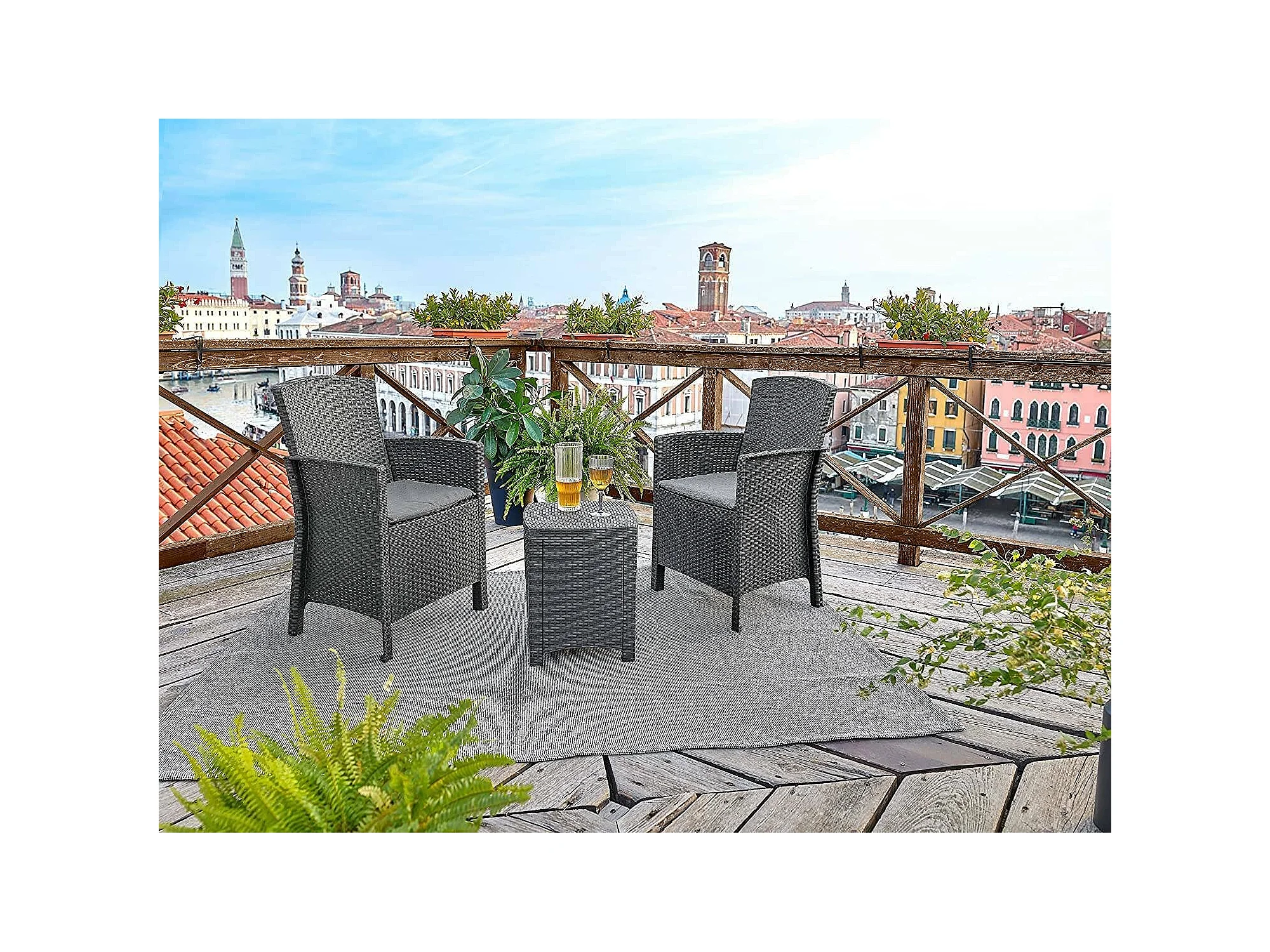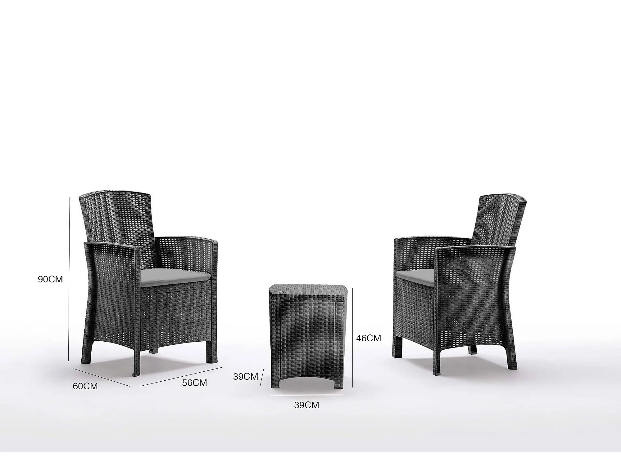 Ensemble de salon d'extérieur Dfre, Ensemble de jardin avec coussins, Ensemble de salon d'intérieur effet rotin, 100% Made in Italy, Anthracite